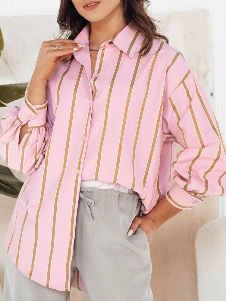 Klasická oversize košile s asymetrickým střihem je must-have pro nadcházející sezónu. Nadčasový pruhovaný potisk zajistí, že budete vždy vypadat co nejlépe. Díky delšímu zadnímu dílu je ideální například v kombinaci s legínami. Díky své univerzálnosti doplní téměř každý outfit o trendy vzhled. Model je k dispozici ve třech barevných variantách.