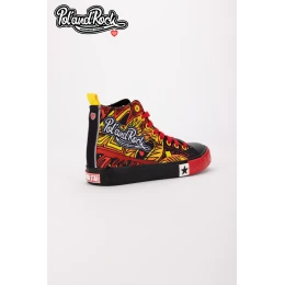 MODEL ROCK Jedinečný vzhled Tento model byl navržen týmem grafiků Jurka Owsiaka a je skutečnou explozí barev a emocí – červená, žlutá a černá tvoří dynamickou kompozici, která okamžitě přitahuje pohled. Na boční části boty se nachází oficiální logo Pol’and’Rock, obklopené grafickými motivy inspirovanými pouličním uměním, hudbou a svobodou. Červené tkaničky a černá podešev zdůrazňují výrazný charakter bot, a celé to doplňuje vysoká kvalita zpracování, pro kterou je značka Big Star Shoes známá. Odolnost a pohodlí Vyrobeny z vysoce kvalitních materiálů, zajišťují pohodlí při nošení po celý den. Pevná gumová podešev zaručuje vynikající přilnavost a ochranu nohy na nerovném terénu, a vysoce kvalitní materiály zajišťují trvanlivost a odolnost proti poškození. Tenisky jsou lehké, pohodlné a ideální na tanec pod scénou, procházky po stanovém poli nebo jednoduše na každodenní nošení s nádechem festivalového stylu. Limitovaná edice Jedinečnost tenisek Big Star Shoes z nich činí skutečný klenot pro sběratele a lidi, kteří sledují nejnovější trendy. Památka Tyto tenisky vám umožní uchovat vzpomínku na 31. ročník festivalu Pol’and’Rock na dlouhou dobu. Festivalová fotografie s vaším partnerem nebo přáteli? Nezapomeňte, že můžete spojit síly a vybrat shodnou obuv pro všechny účastníky. Při výběru velikosti se řiďte tabulkou velikostí.