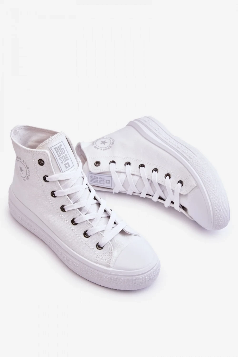 Dámské vysoké tenisky byly vyrobeny z textilního materiálu. Na boku svršku mají ozdobné logo značky Big Star. Měkká, látková stélka zajistí pohodlí při používání. Stojí na jemné platformě s protiskluzovou podrážkou. Klasický model se šněrováním. Nezapomeňte si prohlédnout celou naši kolekci obuvi BIG STAR.