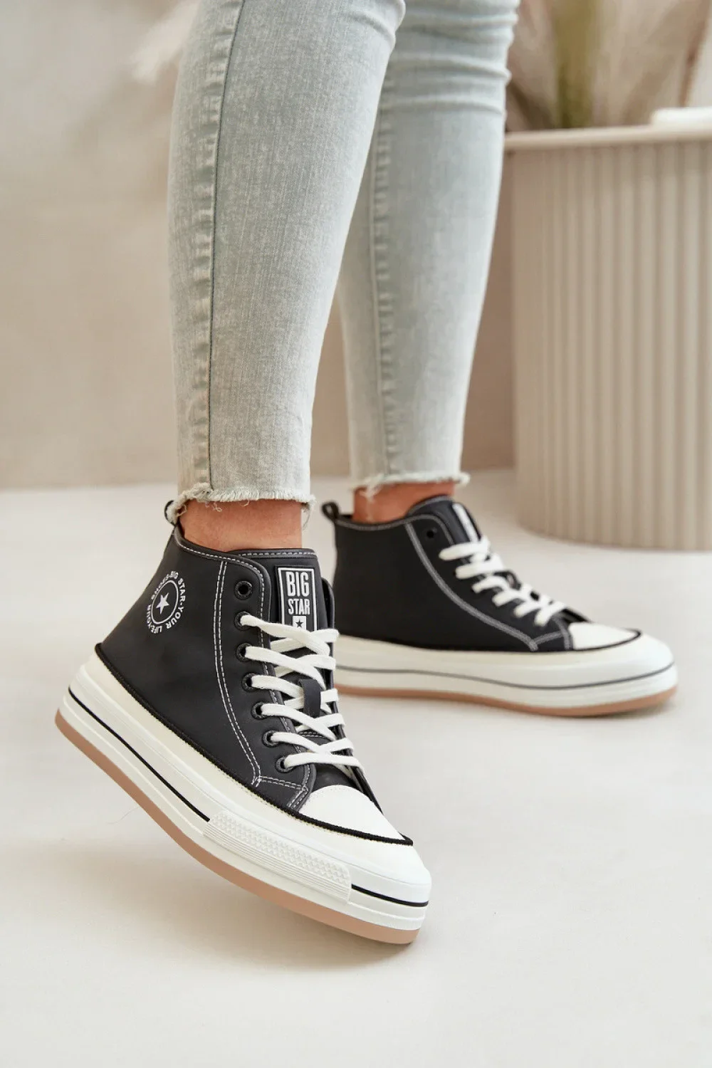 Dámské tenisky značky Big Star. Vyrobeny z vysokokvalitních materiálů, zaručují pohodlí a komfort při nošení po celý den. Jejich barva umožňuje snadné sladění s různými stylizacemi a jsou vhodné jak na každodenní nošení, tak na formálnější příležitosti. Tenisky mají pohodlnou vložku, která poskytuje další pohodlí při chůzi. Solidní gumová podrážka zajišťuje dobré přilnavosti na různých površích. Model s teplou podšívkou z příjemného obuvnického plátna. Perfektní na podzim a zimu!