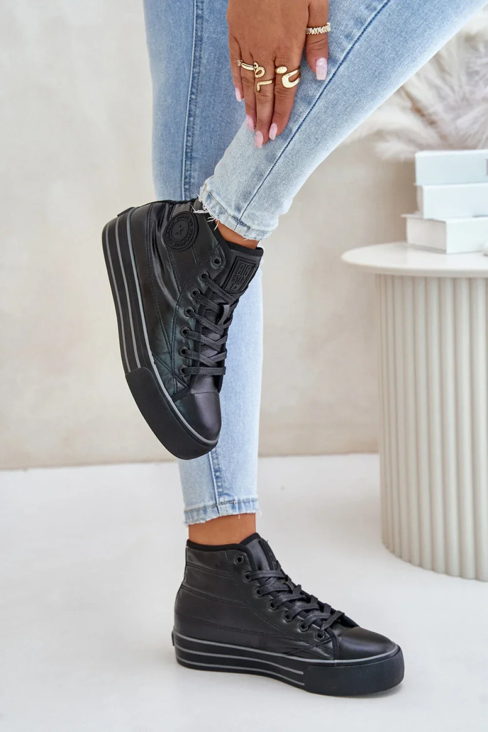 Tyto dámské zateplené tenisky na platformě od značky Big Star jsou stylovou volbou pro chladnější dny. Jsou vyrobeny s důrazem na detail a poskytují pohodlí díky robustní vyvýšené podrážce, která dodá charakter každému oblečení. Trenéři mají šněrování pro dokonalé usazení na noze. Zateplený vnitřek poskytuje teplo, takže jsou ideální volbou na podzim a zimu a kombinují módní vzhled s funkčností.....