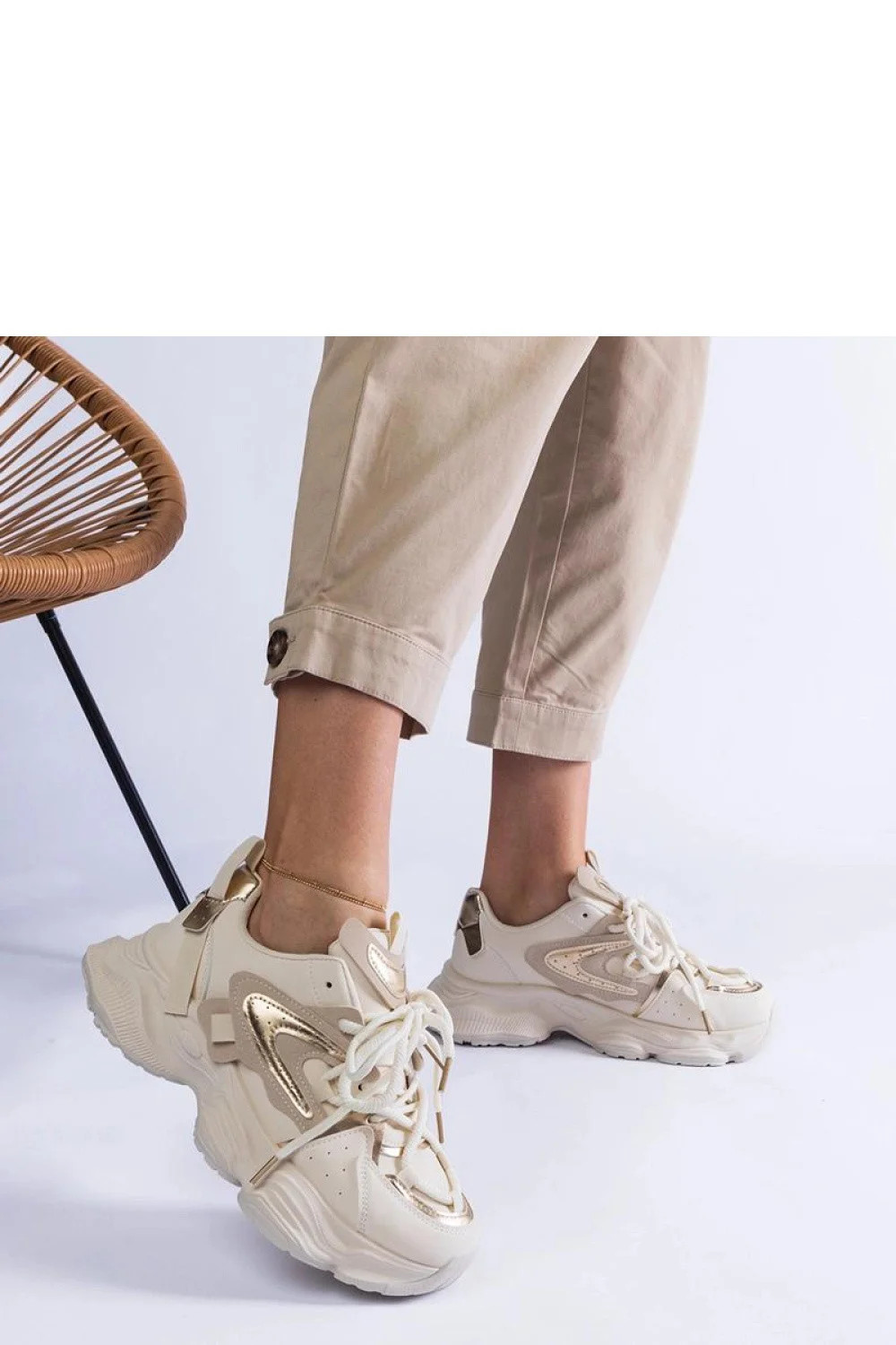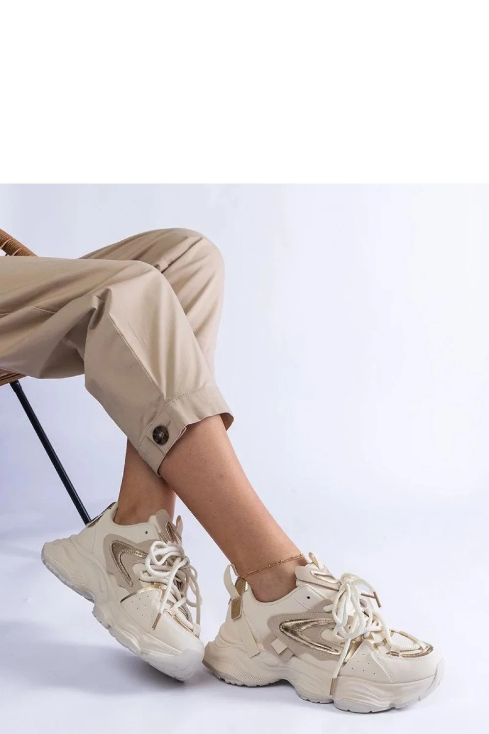 Bežové sportovní tenisky pro ženy na masivní podešvi Lien Hurtado jsou ideální obuv pro aktivní ženy! Jejich univerzální barva znamená, že budou perfektně ladit s mnoha styly. Pohodlné a lehké, zajistí vám pohodlí každý den a díky solidnímu provedení vám poslouží po mnoho sezón. Šněrování zajistí ideální přizpůsobení noze. Vnější materiál je vyroben z ekologické kůže a podešev z gumy zajistí dobrou přilnavost na různých površích. Tyto tenisky spojují styl, pohodlí a odolnost!