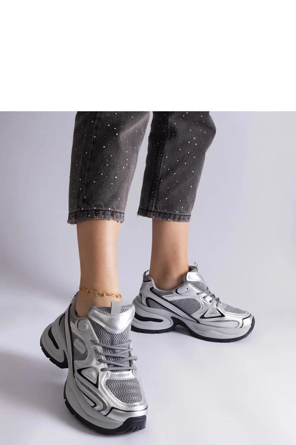 Stříbrné tenisky s masivní podrážkou Adoma Hurtado jsou ideální volbou pro milovníky streetwearu! Vyrobené z vysoce kvalitních materiálů poskytují pohodlí a styl na každý den. Jejich unikátní design vás vynese z davu a pevná konstrukce zaručuje odolnost a pohodlí při nošení. Šněrovací uzavření umožňuje ideální přizpůsobení noze. Tyto tenisky jsou nízké, mají černou gumovou podrážku a skvěle se hodí k mnoha stylizacím.