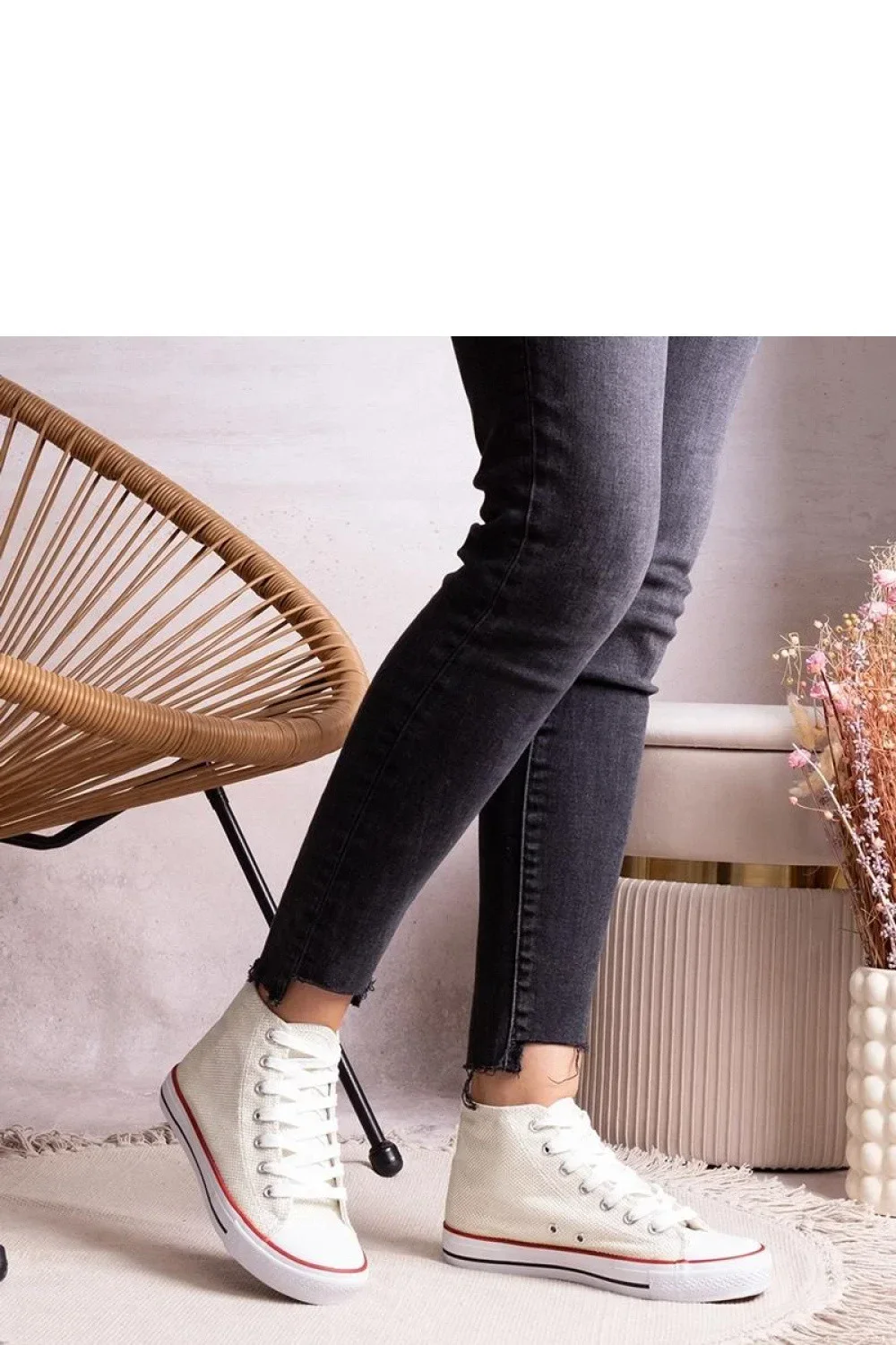 Bílé vysoké tenisky z lesklého síťování Ranifali jsou aktuálním hitem sezóny! Tyto moderní boty se vyznačují šněrováním, pryžovou podrážkou a kulatou špičkou, což je činí neuvěřitelně stylovými. Skvěle ladí s různými outfitmi, dodávají nezaměnitelný charakter a umožňují držet krok s nejnovějšími trendy. Vysoké tenisky Ranifali jsou naprostý must-have pro každého milovníka módy! Materiál svršku: Tkanina Výška: Vysoké Materiál podrážky: Pryž Barva podrážky: Béžová Zapínání: Šněrování Kolekce: Podzim/Jaro