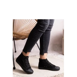 Černé vysoké tenisky Rafife jsou skvělou volbou pro ty, kteří milují moderní styl a eleganci. Jejich módní design vypadá skvěle jak v každodenních, tak ve formálnějších stylizacích. Díky šněrování perfektně padnou na nohu a vysoký svršek jim dodává charakter. Kulatá špička zaručuje pohodlí při nošení a gumová podrážka zajišťuje stabilitu a pohodlí při chůzi. Tyto tenisky jsou kombinací funkčnosti a stylu, která jistě přitáhne pozornost ostatních. Ideální na nadcházející léto a jaro. Materiál z vnějšku je vyroben z látky, výška - vysoká, a podrážka je vyrobena z černé gumy. Šněrovací zapínání zajišťuje dodatečné přizpůsobení.