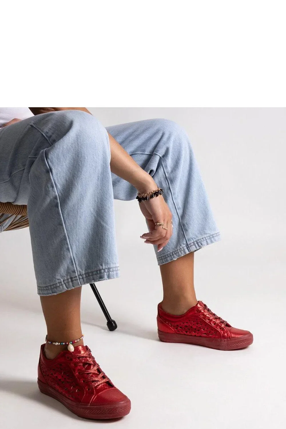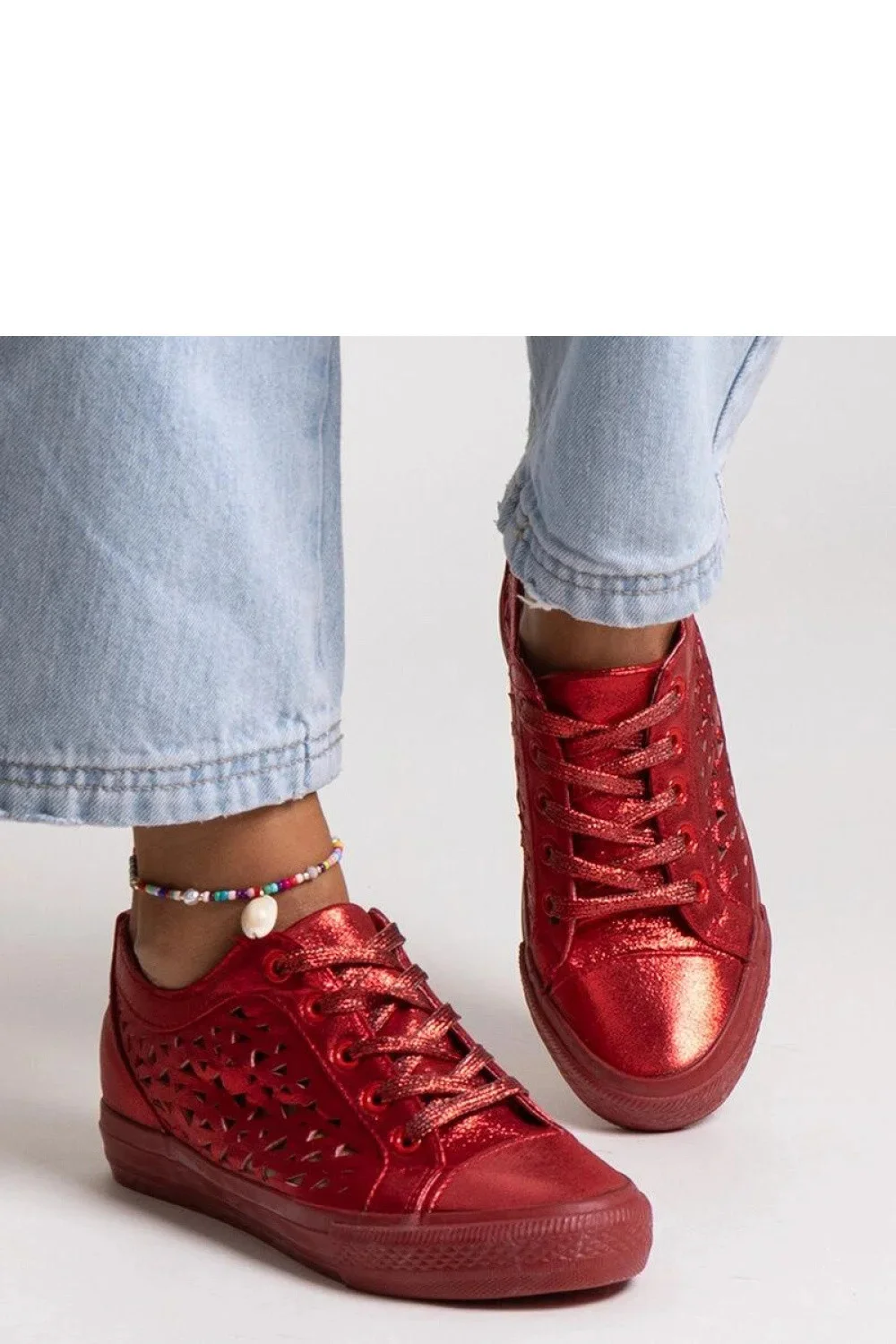 Červené prodyšné tenisky Safune Adidas jsou ideální obuv na horké dny. Jejich kovový design jim dodává moderní a elegantní vzhled. Mají zaoblený špičatý konec a vysoký límec, což jim dodává moderní charakter. Tenisky mají šněrování, díky čemuž je lze přizpůsobit své noze. Vyrobena z gumy zajistí pohodlné nošení a vynikající přilnavost k podložce. Jedná se o skvělou volbu pro ty, kteří ocení originální styl a pohodlí. - Vnější materiál: Ekologická zamszová kůže - Výška: Vysoká - Materiál podešve: Guma - Barva podešve: Červená - Zapínání: Na šněrování - Kolekce: Léto