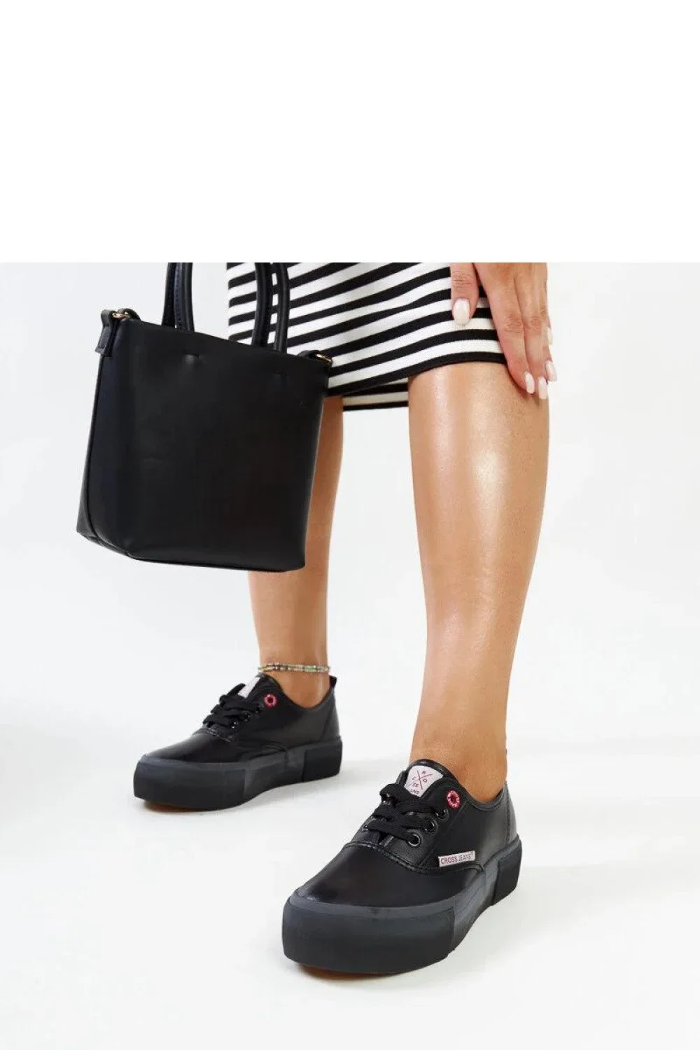 Tenisky CROSS JEANS pro ženy v černé barvě jsou skvělým návrhem pro každou milovnici módy. Mají zaoblenou špičku a nízký podpatek, což zajišťuje pohodlí a jsou ideální na každodenní nošení. Vyrobené z gumy poskytují stabilitu a pohodlí během nošení. Navíc mají praktické šněrování, které umožňuje perfektní přizpůsobení noze. Tyto levné boty jsou skvělým doplňkem každodenních outfitů. Materiál vnější: Tkanina, podšívka: ne, materiál podrážky: Guma, barva podrážky: Hnědá, uzavírání: Šněrování, kolekce: Léto/Jaro.