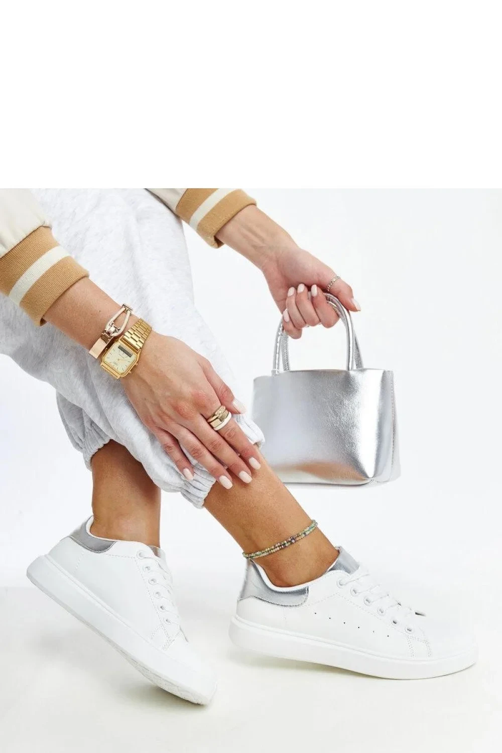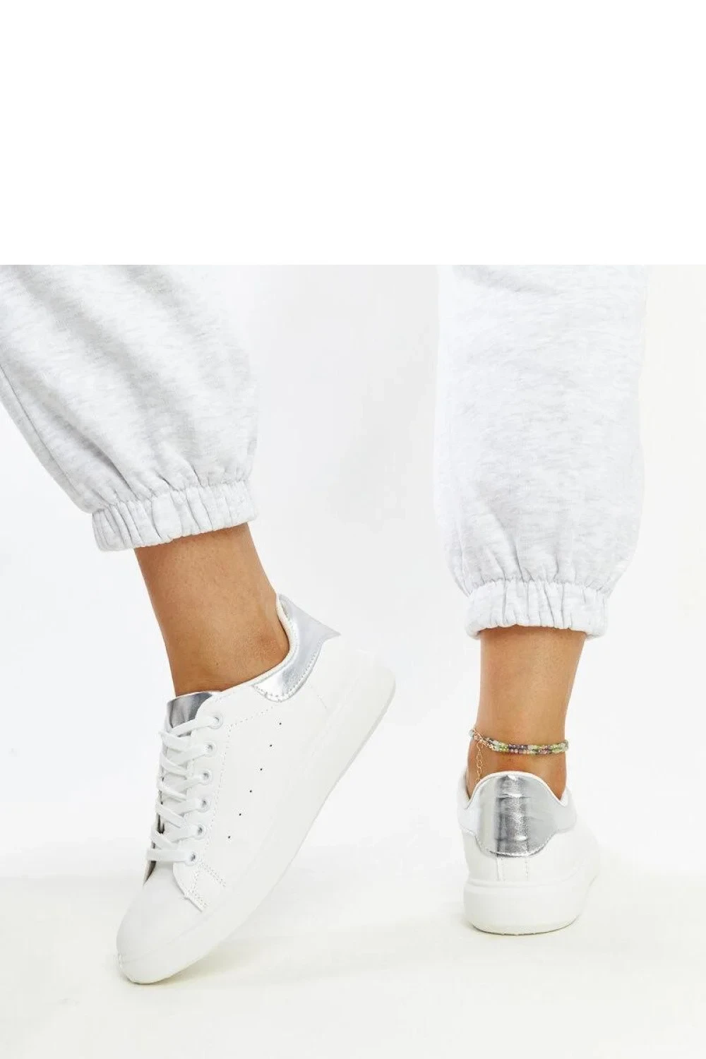 Bílé tenisky na platformě Ariam jsou ideální obuví na léto. Vyrobené z vysoce kvalitní ekologické kůže se stříbrnými akcenty, dodávají styl každému outfitu. Tenisky mají šněrování, co zajišťuje ideální přizpůsobení k noze. Podrážka z bílé gumy zaručuje pohodlí a stabilitu. Ideální na letní výlety a procházky.