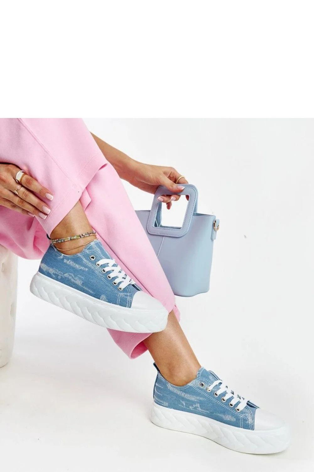 Modré tenisky na vysoké platformě Almaz jsou ideální volbou na letní dny. Jejich moderní design s kulatou špičkou a vysokou platformou jim dodává eleganci. Vyrobené z odolné gumy, jsou nejen stylové, ale také pohodlné. Šněrovací zapínání umožňuje ideální přizpůsobení noze. Tyto nízké tenisky jsou skutečným hitem v letním šatníku! Vnější materiál je látkový, výška - nízká, podšívka - žádná, podrážka je vyrobena z bílé gumy. Ideální na letní dny!