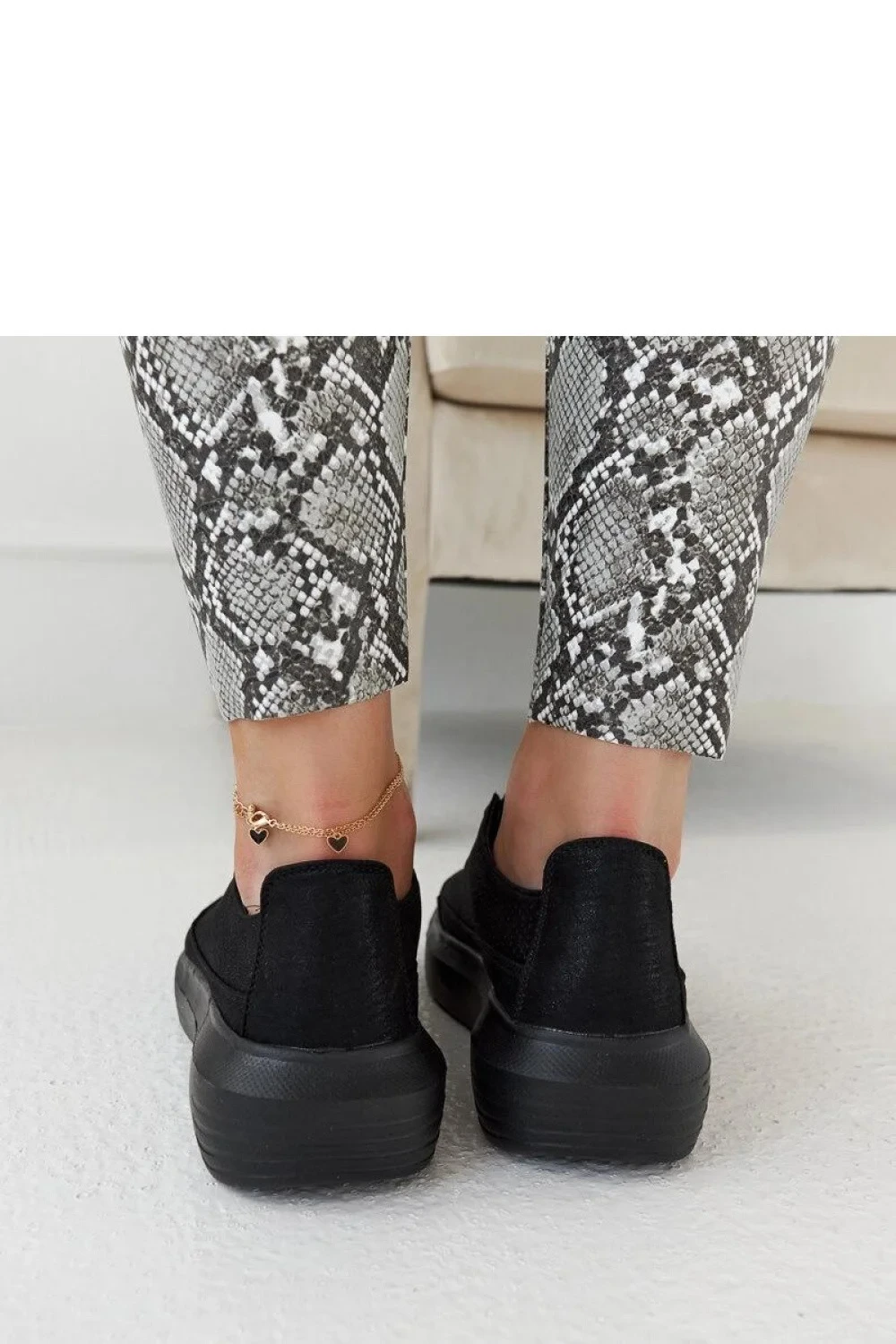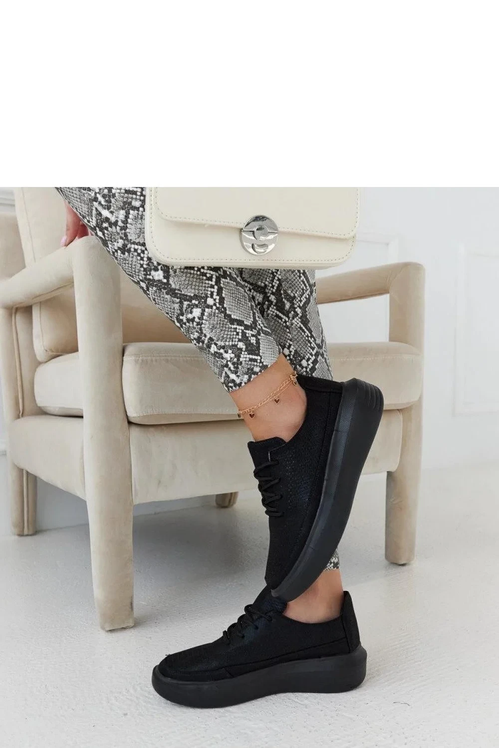 Černé tenisky na platformě Lori jsou ideální obuví na léto. Vyrobené z vysoce kvalitní ekologické kůže, poskytují pohodlí a styl každým krokem. Pohodlná platforma přidává pár centimetrů na výšku a zároveň zajišťuje stabilitu během chůze. Tenisky mají šněrovací uzavření, které umožňuje ideální přizpůsobení bot k noze. Materiál podrážky je odolná černá guma, skvěle ladící s celým botem. Skvělá obuv pro ženy, které si cení pohodlí a módní vzhled zároveň.