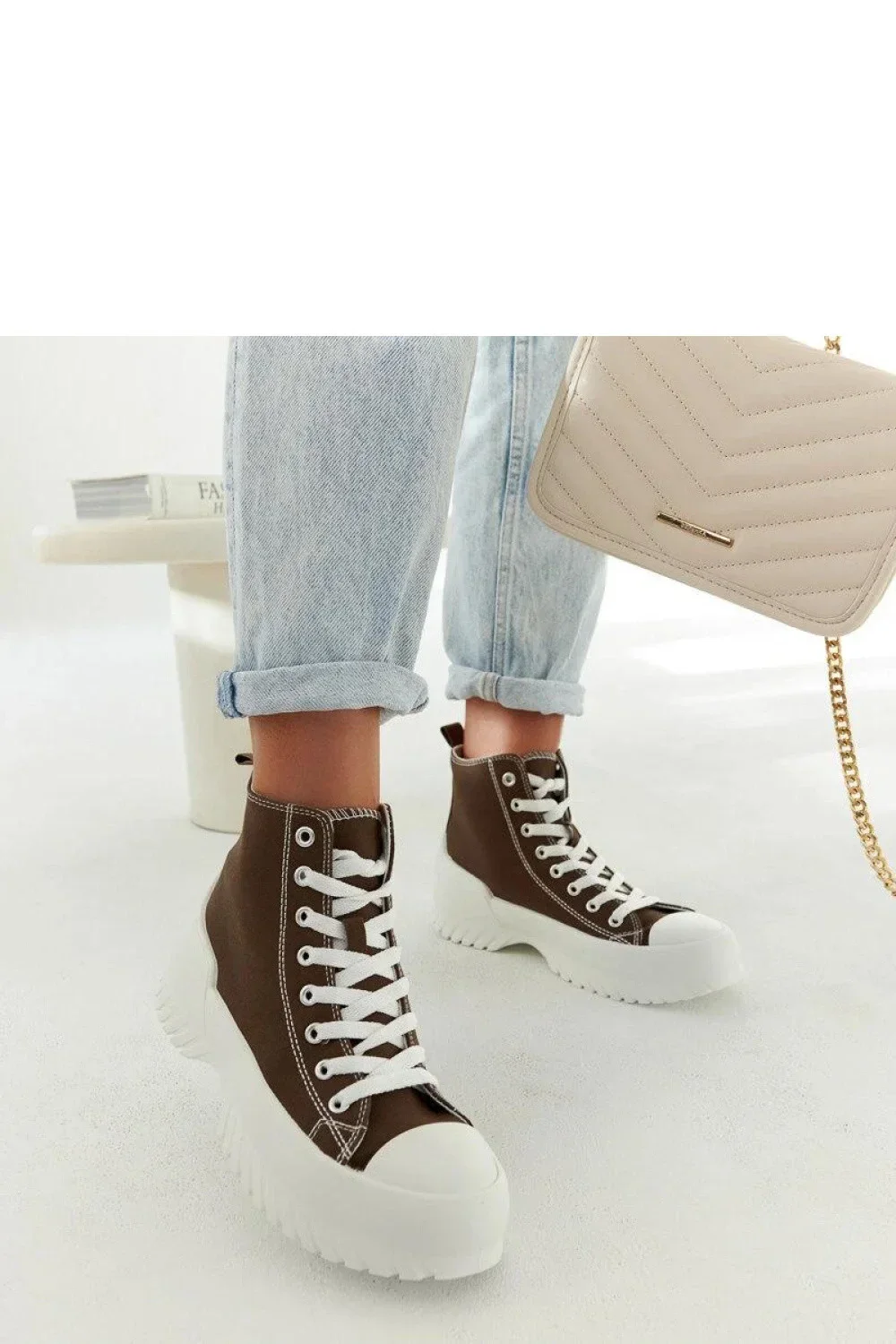 Zelené tenisky Ronchis po kotník jsou skvělou volbou na letní dny. Jejich moderní design a pohodlný střih je udělá ideálním doplňkem ke každé módní stylizaci. Vyrobené z vysoké kvality gumy zajistí skvělý úchop na různých površích. Středný podpatek jim dodá eleganci, zároveň zůstávají pohodlné po celý den. Šněrovací uzavření zajistí perfektní přizpůsobení noze, a kulatý nos pak dodá jemnosti. Tyto tenisky budou stylovým doplňkem letního outfitu, který jim dodá nezaměnitelný charakter. Vnější materiál je tkanina, výška boty - vysoká, zateplení - žádné, podrážka z bílé gumy. Ideální na léto!