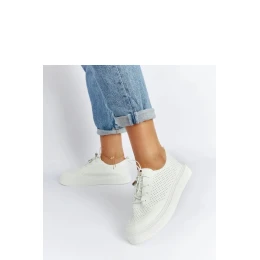 Bílé perforované tenisky Laytonville jsou ideální volbou na letní dny. Vyrobené z vysoce kvalitní ekologické kůže s dodatečnými perforacemi, zajistí dostatečnou ventilaci nohou. Model nemá žádnou podšívku, díky čemuž se skvěle hodí do teplejších dnů. Podrážka z odolné gumy v bílé barvě poskytuje pohodlí a stabilitu během nošení. Šněrování umožňuje ideální přizpůsobení noze. Tyto tenisky z letní kolekce budou skvělým doplňkem letního šatníku.