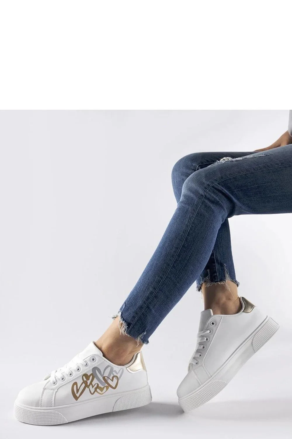 Bílé tenisky na platformě Montclair jsou ideální volbou pro ty, kteří si cení pohodlí a stylu. Vyrobené z vysoce kvalitní ekologické kůže s kovovými zlatými akcenty dodávají každému outfitu charakter. Šněrovací uzavírání zajišťuje perfektní přizpůsobení bot k noze. Podrážka z umělé hmoty je odolná a zaručuje pohodlí při nošení. Skvělá volba na léto, kdy chcete zdůraznit svůj individuální styl.