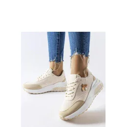 Beige and white sneakers with decorative thread Acciano are stylish and comfortable footwear ideal for the spring-summer season. The sneakers have a beige rubber sole that provides excellent grip and comfort. The lace-up closure allows the shoes to be perfectly adjusted to the foot. An additional decorative element is the decorative thread, which adds originality and character to the sneakers. Perfect for casual everyday stylizations.