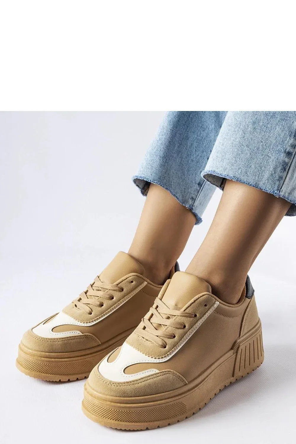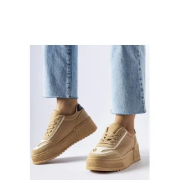 Bežové tenisky na tlusté platformě Seluci jsou ideální obuv na jaro a léto. Vyrobené z vysoce kvalitní ekologické kůže, poskytují pohodlí a odolnost. Nízká výška z nich dělá ideální volbu pro každodenní nošení, a béžová pryžová podrážka jim dodává módní dokončení. Šněrování umožňuje snadné přizpůsobení noze. Tyto tenisky jsou ideální volbou pro ty, kteří ocení pohodlí a styl v jednom. Ideální pro každodenní outfity.