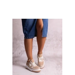 Bežové tenisky s zrcadlovým vložením Kollins jsou skvělou volbou pro nadcházející léto. Vyrobené z vysoce kvalitní ekologické kůže zam, poskytují pohodlí a odolnost. Zrcadlové vložení jim dodává moderní a stylový vzhled. Tenisky mají šněrovací uzavírání, což umožňuje ideální přizpůsobení se chodidlu. Materiál podrážky je odolná tmavě béžová guma. Ideální na letní procházky nebo setkání s přáteli. Přidají každému outfitu svěžest a módní akcent.