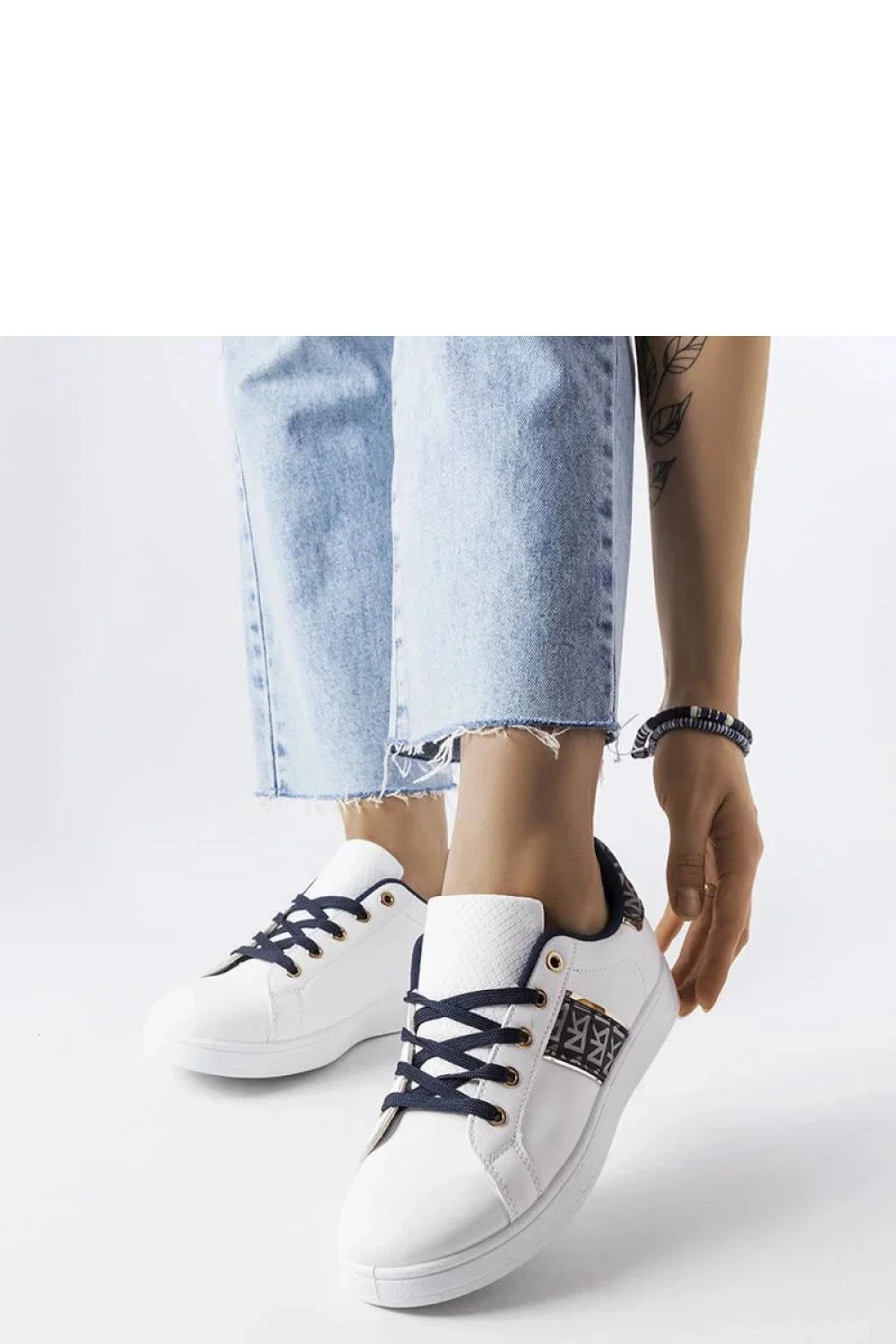 Bílé tenisky Sauriol jsou ideální volbou na léto. Mají nízký svršek zdobený detaily, které jim dodávají jedinečný charakter. Velikost je standardní, takže doporučujeme vybrat svou běžnou velikost. Tenisky mají bílou pryžovou podrážku, která zajistí pohodlí a pohodlí během nošení. Zapínání na tkaničky umožňuje perfektní přizpůsobení bot k noze. Tyto tenisky nejsou podšité, takže se skvěle hodí na teplé letní dny. Přidejte si do své sbírky tento módní a pohodlný model, který bude skvělým doplňkem letního šatníku.