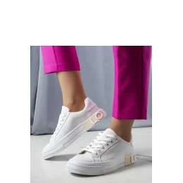 Bílo-beige tenisky zdobené nápisem Nora jsou ideální volbou pro všechny milovníky casual stylu. Tenisky mají šněrovací uzavírání, díky kterému je lze přizpůsobit své noze. Jsou vyrobeny z vysoce kvalitních materiálů a podrážka je vyrobena z bílé gumy. Skvěle se hodí jak na každý den, tak na víkendové procházky nebo setkání s přáteli. Tenisky z letní kolekce, které dodají charakter každému outfitu.