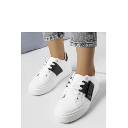 Bílé tenisky zdobené černou sponou Toni jsou stylové boty ideální na léto. Mají bílou gumovou podrážku a šněrovací uzávěr, což zajišťuje pohodlí nošení. Dalším ozdobným prvkem je černá spona, která botám dodává jedinečný charakter. Ideální pro ležérní stylizace na teplé dny.