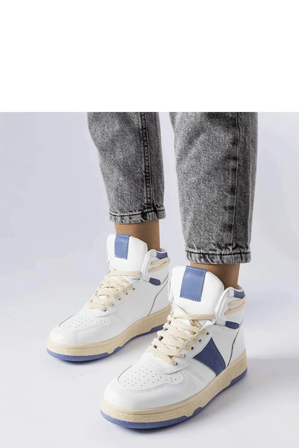 Novinka v naší nabídce - modré tenisky nad kotník Robin! Tyto stylové boty se vyznačují pohodlným šněrováním a modrou pryžovou podrážkou, která zajistí stabilitu a pohodlí během chůze. Skvěle se hodí na letní dny, skvěle poslouží jak v běžném životě, tak při aktivnějších procházkách nebo setkáních s přáteli. Díky svému klasickému designu budou skvělým doplňkem letního šatníku. Bez ohledu na příležitost, tyto tenisky budou stylovým a praktickým doplňkem každého outfitu!