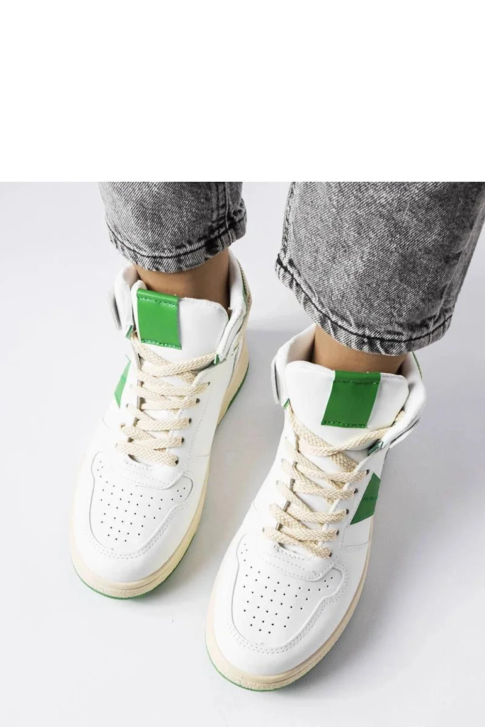Zelené tenisky Robin po kotníky jsou ideální obuví na léto. Mají klasický design, šněrovací uzavírání a pohodlnou zelenou gumovou podrážku. Tento model nemá žádné podšívky, což znamená, že se skvěle hodí na teplé dny. Tyto tenisky se skvěle hodí k letním outfitům, dodávají jim sportovní charakter. Ideální pro ty, kteří ocení pohodlí a stylový vzhled.