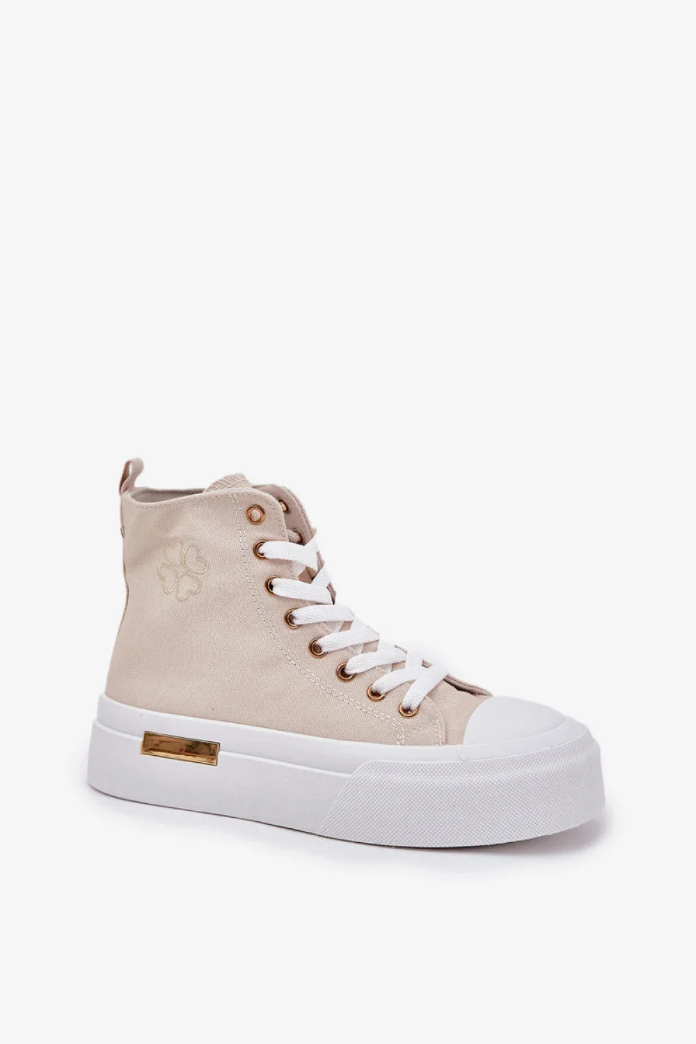 Vysoké dámské tenisky vyrobené z textilního materiálu. Umístěné na platformě z gumového materiálu, který poskytuje pohodlí a moderní vzhled. Zaoblené špičky dodávají lehkost, zatímco platforma zajišťuje pohodlí po celý den. Tyto tenisky skvěle ladí s různými styly, ideální jak pro každodenní, tak sportovní outfit, spojují funkčnost s módním akcentem.