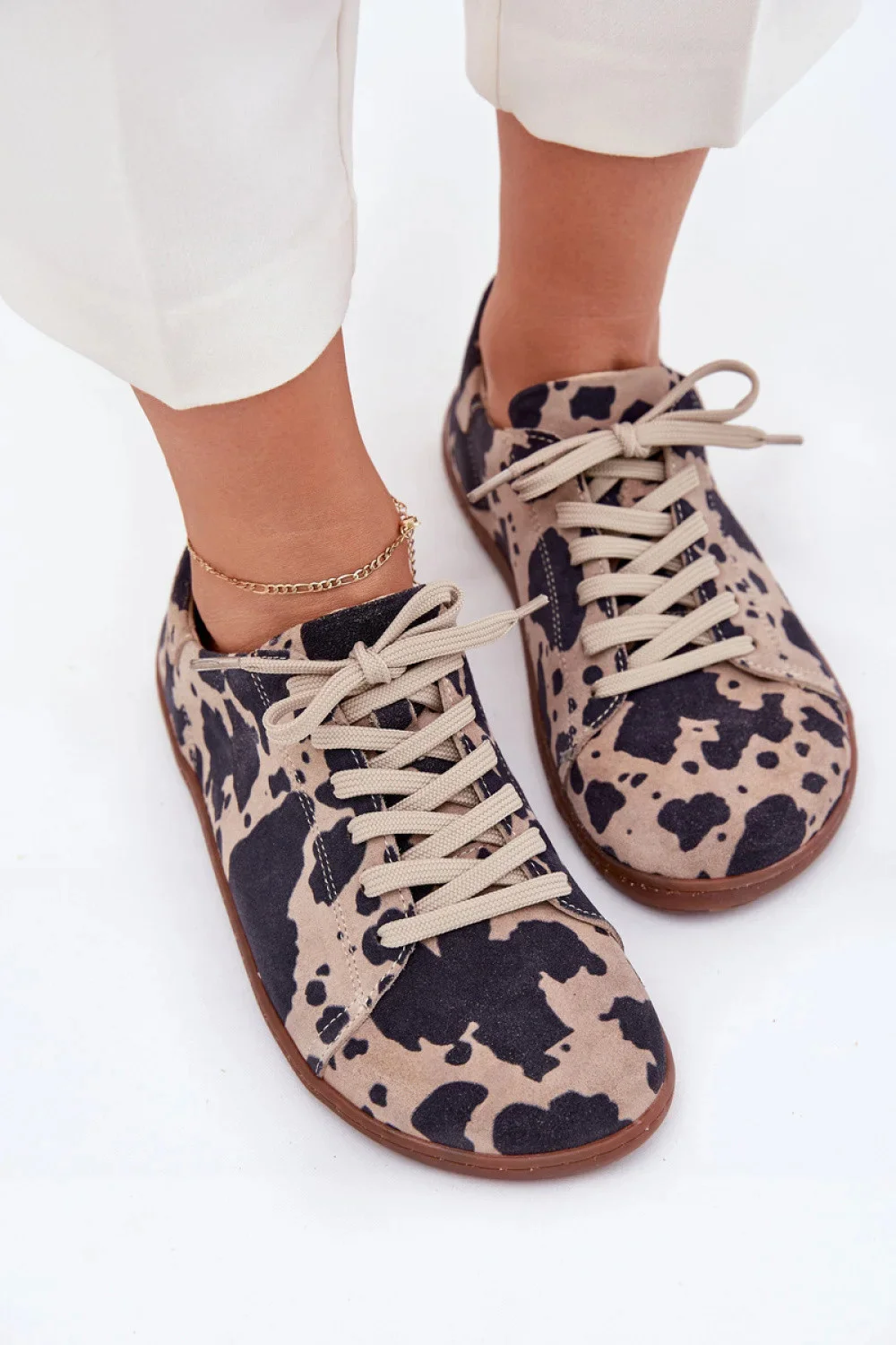 Tenisky pro ženy vyrobené z přírodního semiše. Barefoot je obuv navržená s ohledem na co nejpřirozenější kontakt chodidla s povrchem. Vyznačují se tenkou, pružnou podrážkou, která umožňuje volný pohyb chodidla a zlepšuje jeho citlivost. Díky tomu boty Barefoot podporují správnou postavu a umožňují přirozené postavení chodidla během chůze. Jsou lehké, pohodlné a ideální pro ty, kteří ocení minimalismus v obuvi a chtějí dbát o zdraví svých nohou. Ideální pro každodenní aktivity a procházky, nabízejí pohodlí a volnost.