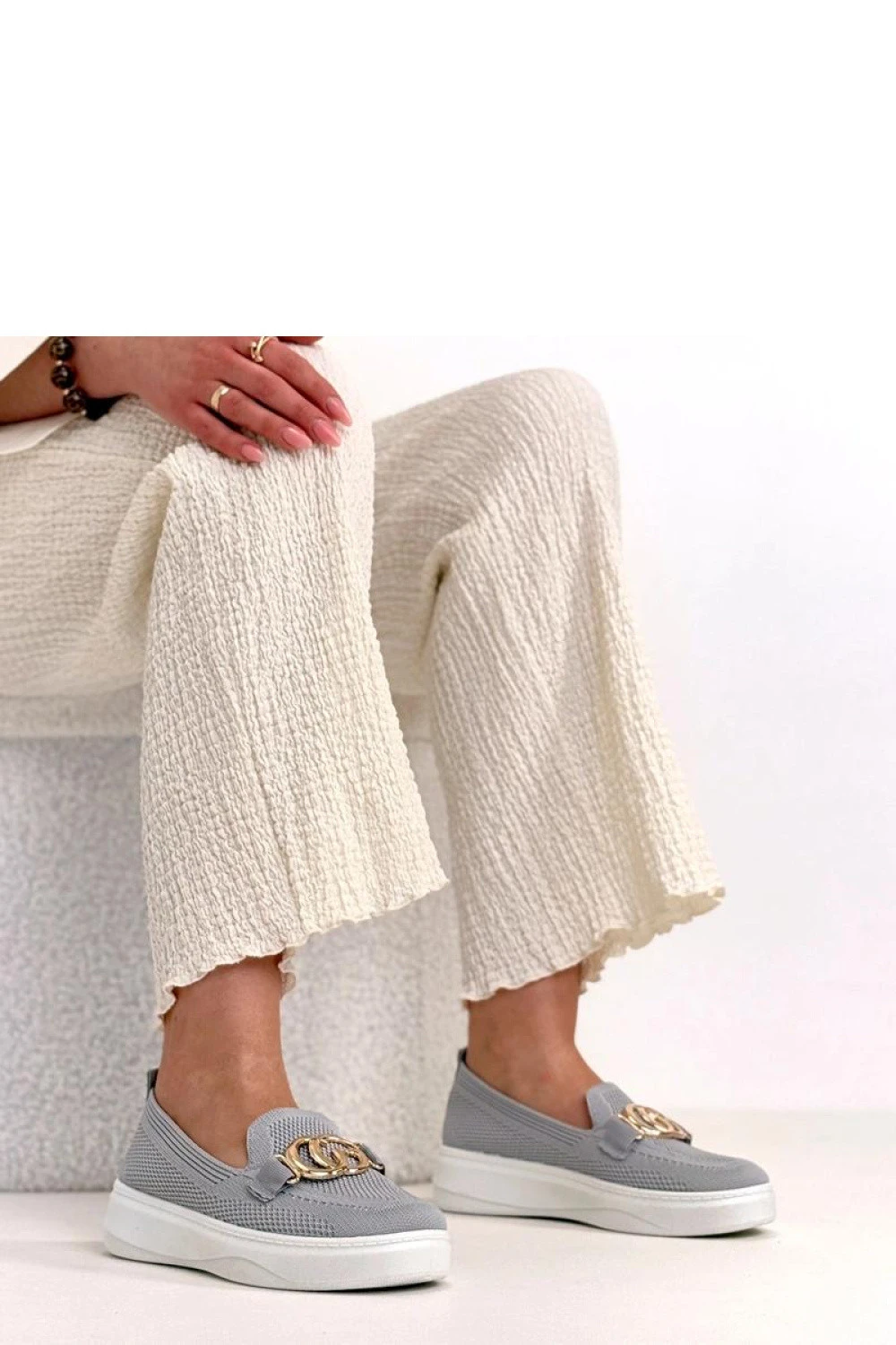 Moderní tenisky s efektní ozdobnou sponou vpředu jsou stylovou nabídkou pro ty, kteří ocení pohodlí a originální detaily. Vyrobené z vysoce kvalitní látky jsou lehké, prodyšné a skvěle se hodí do každodenního nošení. Model má kulatou špičku, která poskytuje pohodlí a volnost pro prsty. Nízký svršek dává botám univerzální charakter, díky čemuž skvěle ladí jak s džíny, tak s sportovními nebo casual stylizacemi. Platforma vysoká 4 cm jemně zdvihuje postavu, přidává několik centimetrů výšky a zároveň zajišťuje stabilitu. Vsuvná konstrukce usnadňuje rychlé obouvání a svlékání obuvi. Stélka z látky zvyšuje pohodlí nošení a podporuje správnou cirkulaci vzduchu. Jsou to ideální tenisky pro ty, kteří chtějí spojit sportovní pohodlí s módním, přitažlivým akcentem.