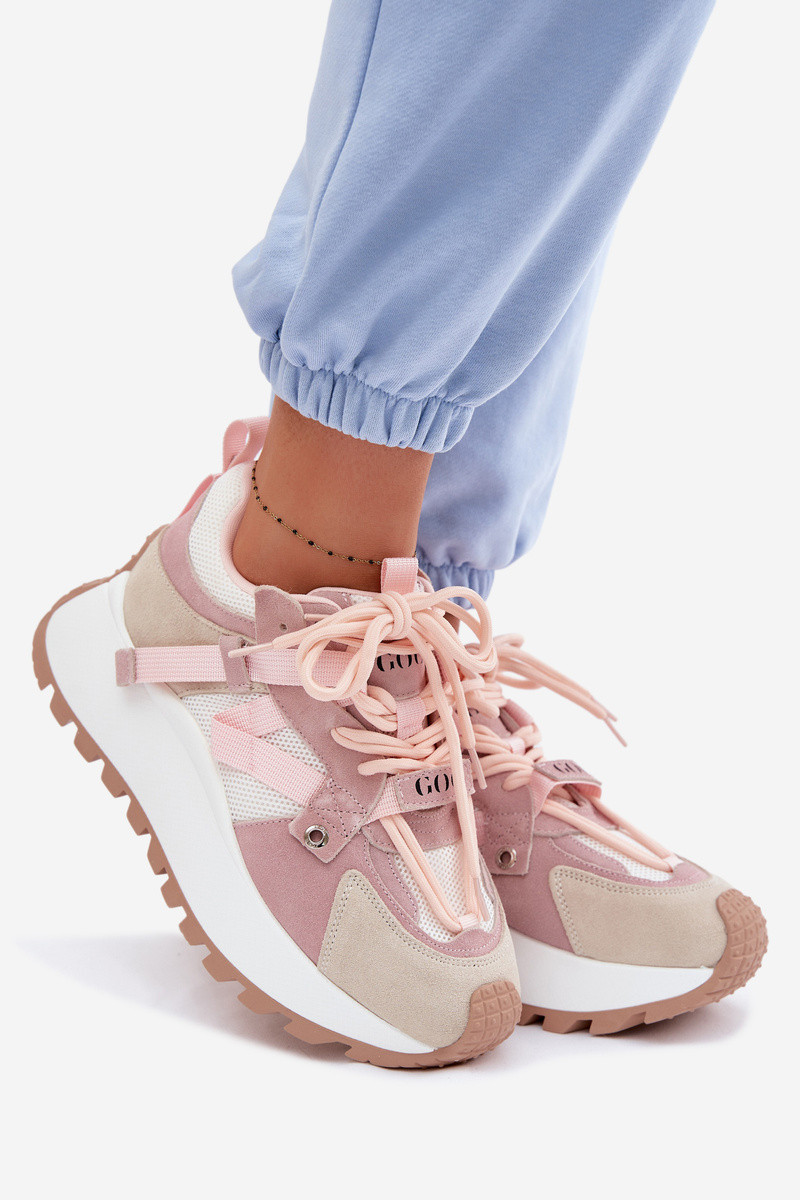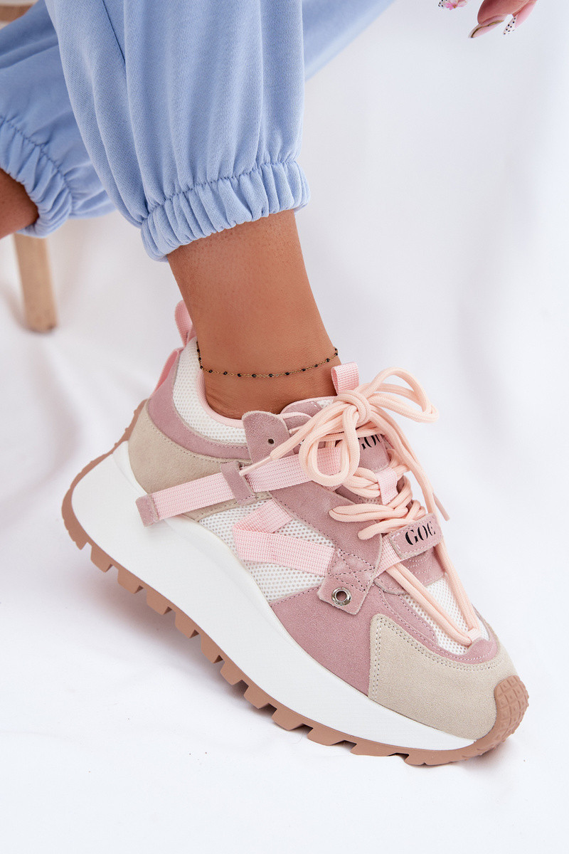Tenisky na platformě z přírodního semiše model 22095134 růžové - Goe