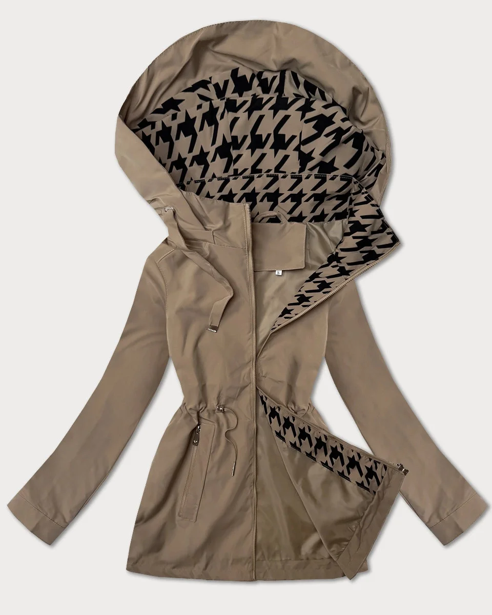 Tenká béžová dámská bunda s ozdobnou podšívkou model 21001846 - J.STYLE