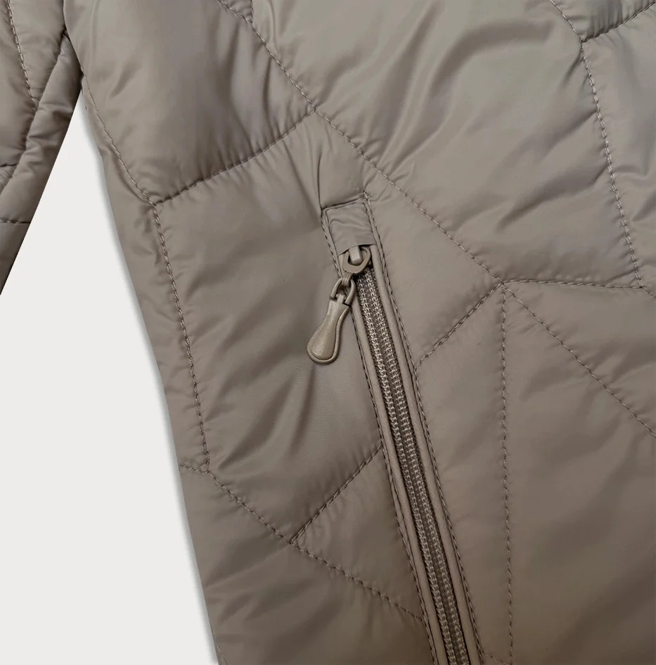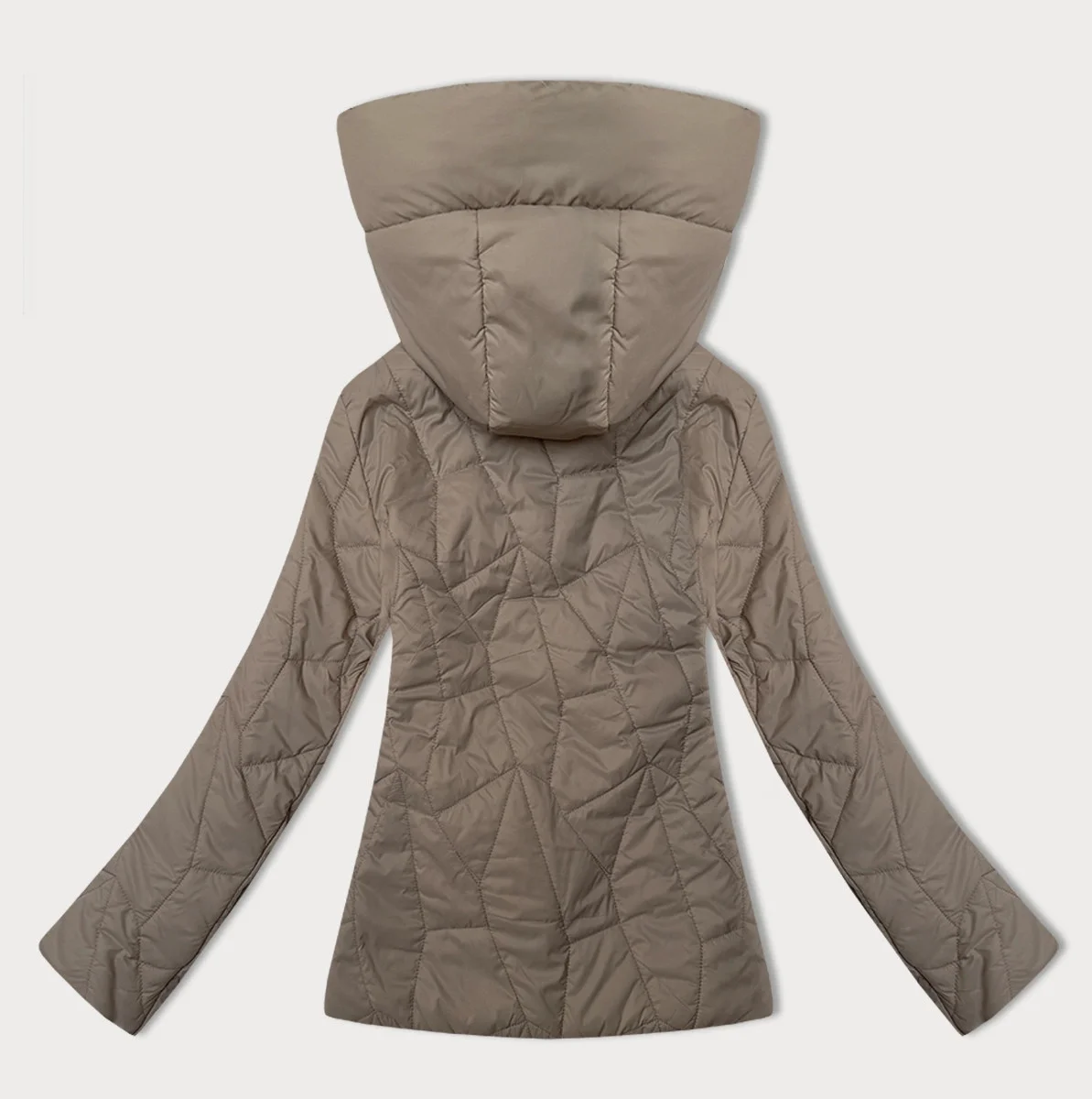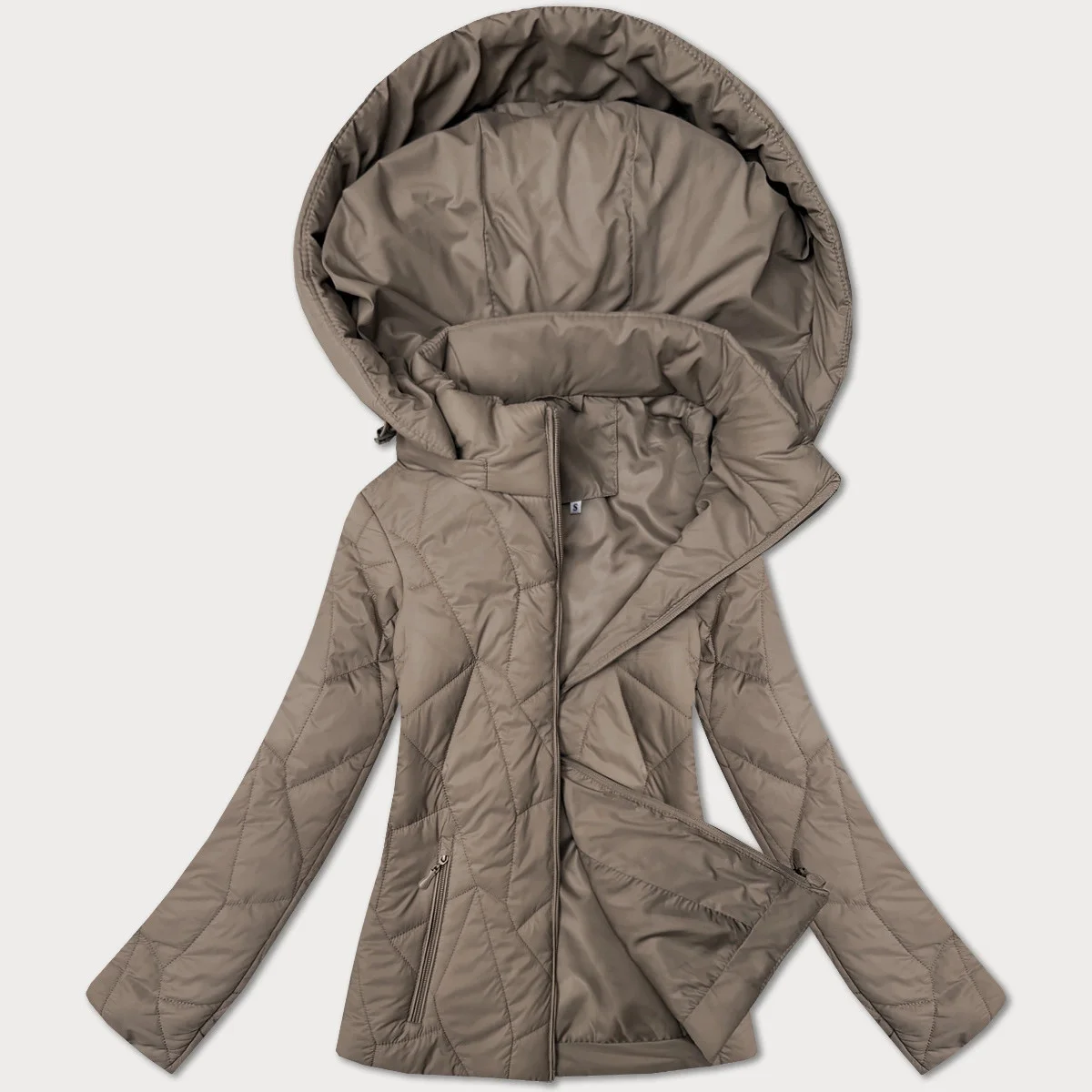 Tenká béžová dámská prošívaná bunda s kapucí model 21001841 - J.STYLE