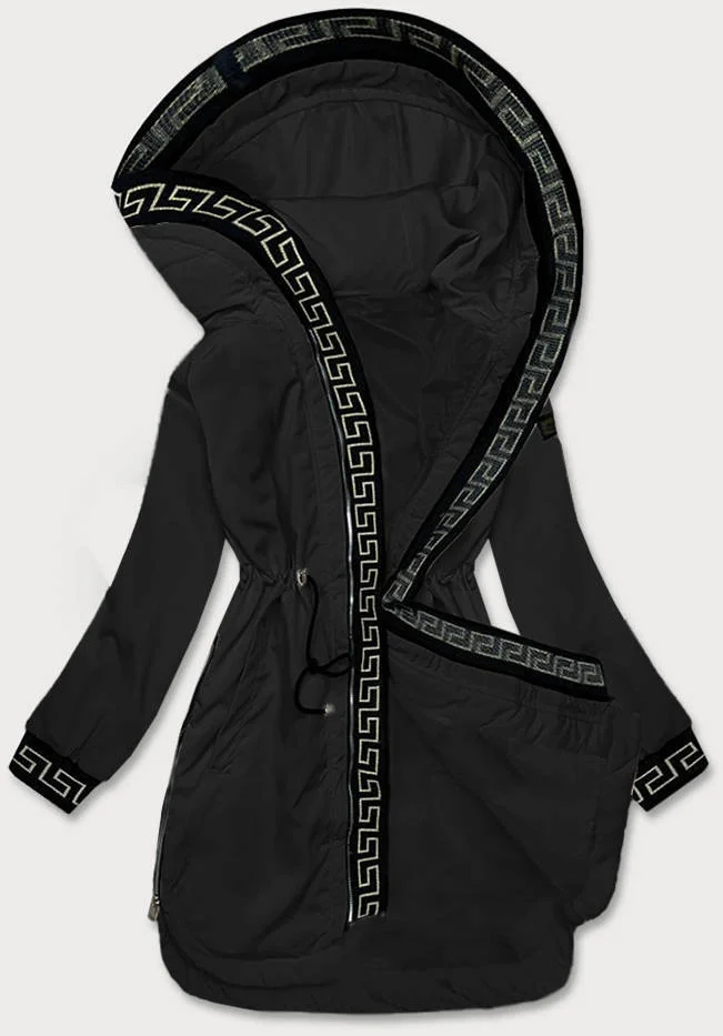 Tenká černá dámská bunda s ozdobnou lemovkou (B8141-1)
