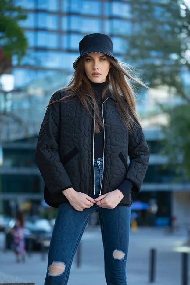 Tenká černá dámská bunda s ozdobným prošíváním model 15834466 - Ann Gissy