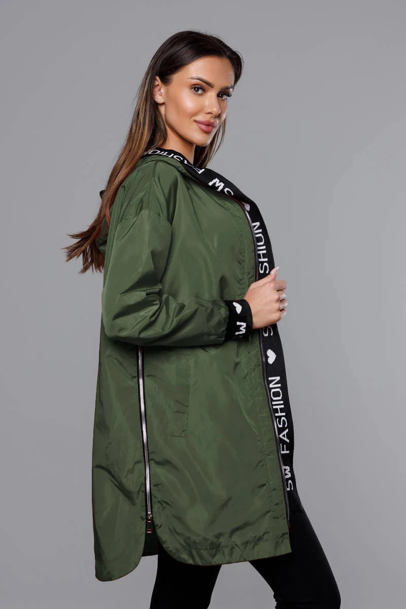 Přidání recenze k Tenká dámská bunda v khaki barvě s ozdobnou lemovkou (B8145-11)