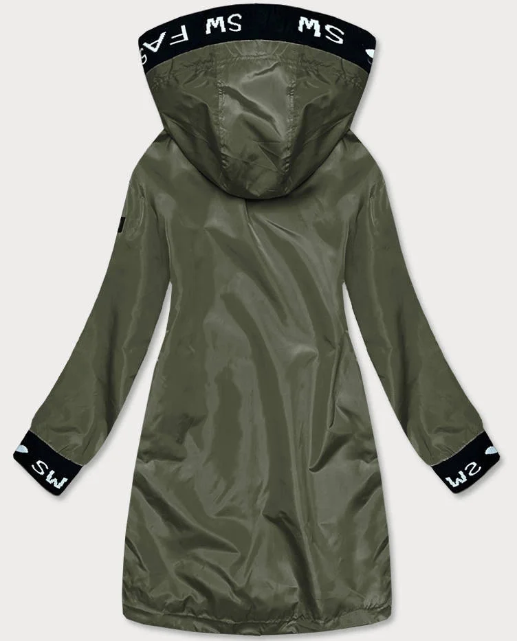 Tenká dámská bunda v khaki barvě s ozdobnou lemovkou (B8145-11)