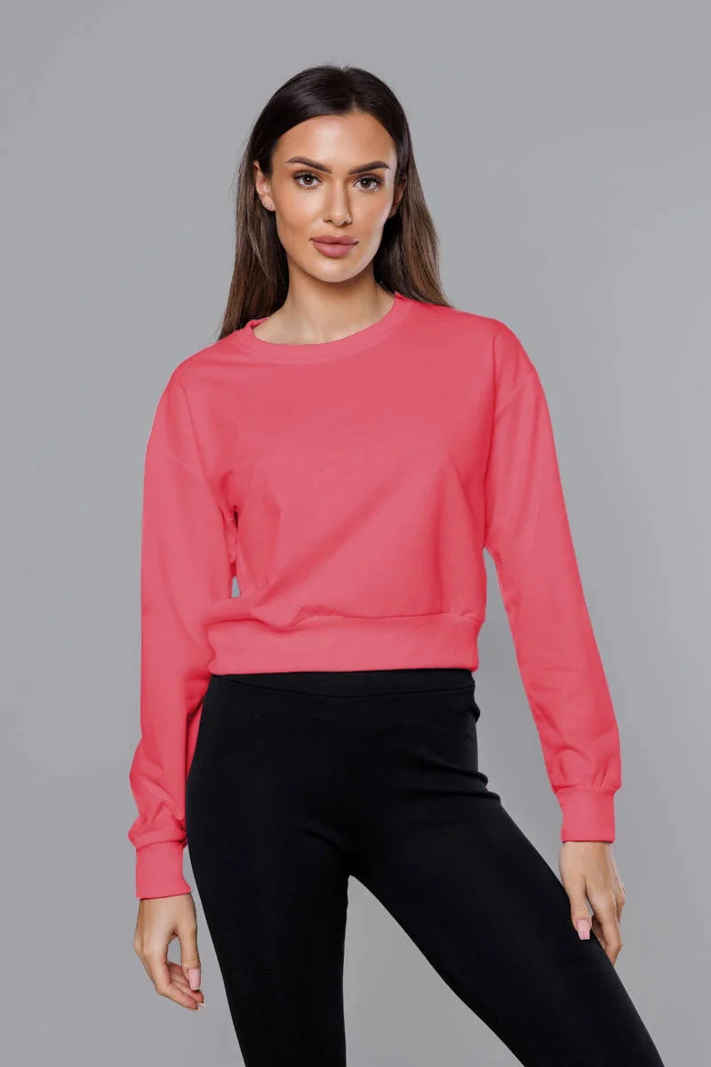 Tenká krátká dámská tepláková mikina v korálové barvě model 18378933 - J.STYLE
