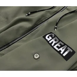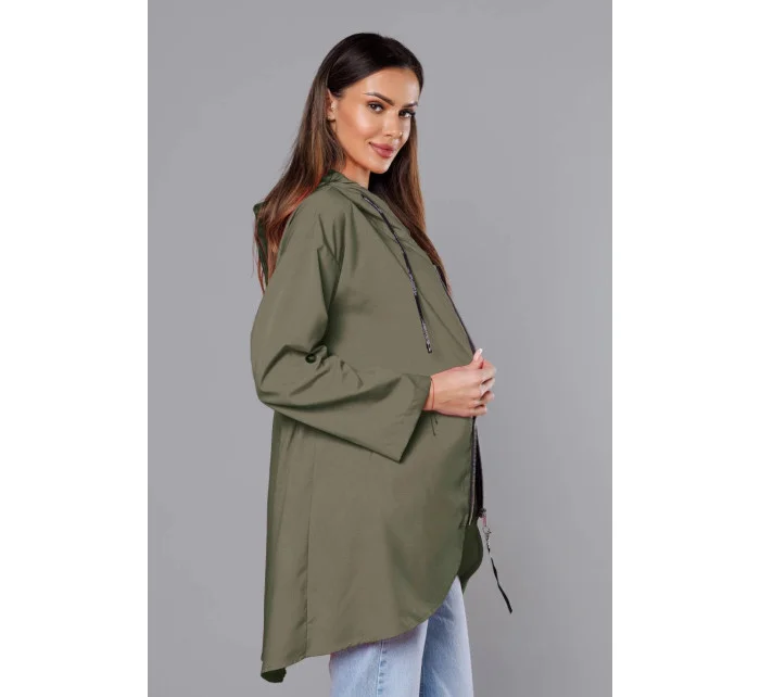 Přehoz se zapíná zipem a má dvě kapsy bez zapínání. Vzadu je v pase guma. Rukávy je možné ohrnout. Přední část modelu má délku k bokům a zadní část má délku do poloviny stehen.