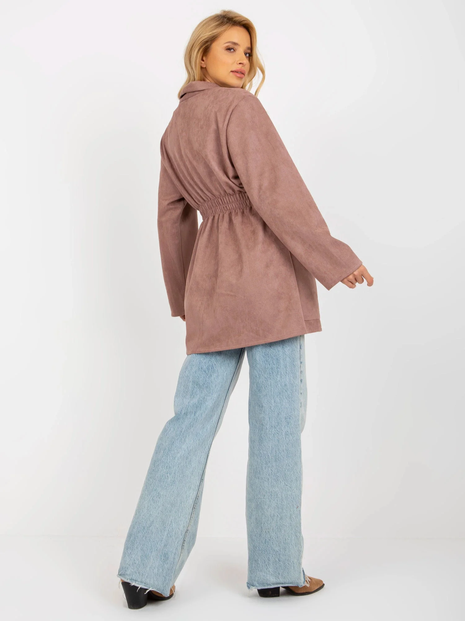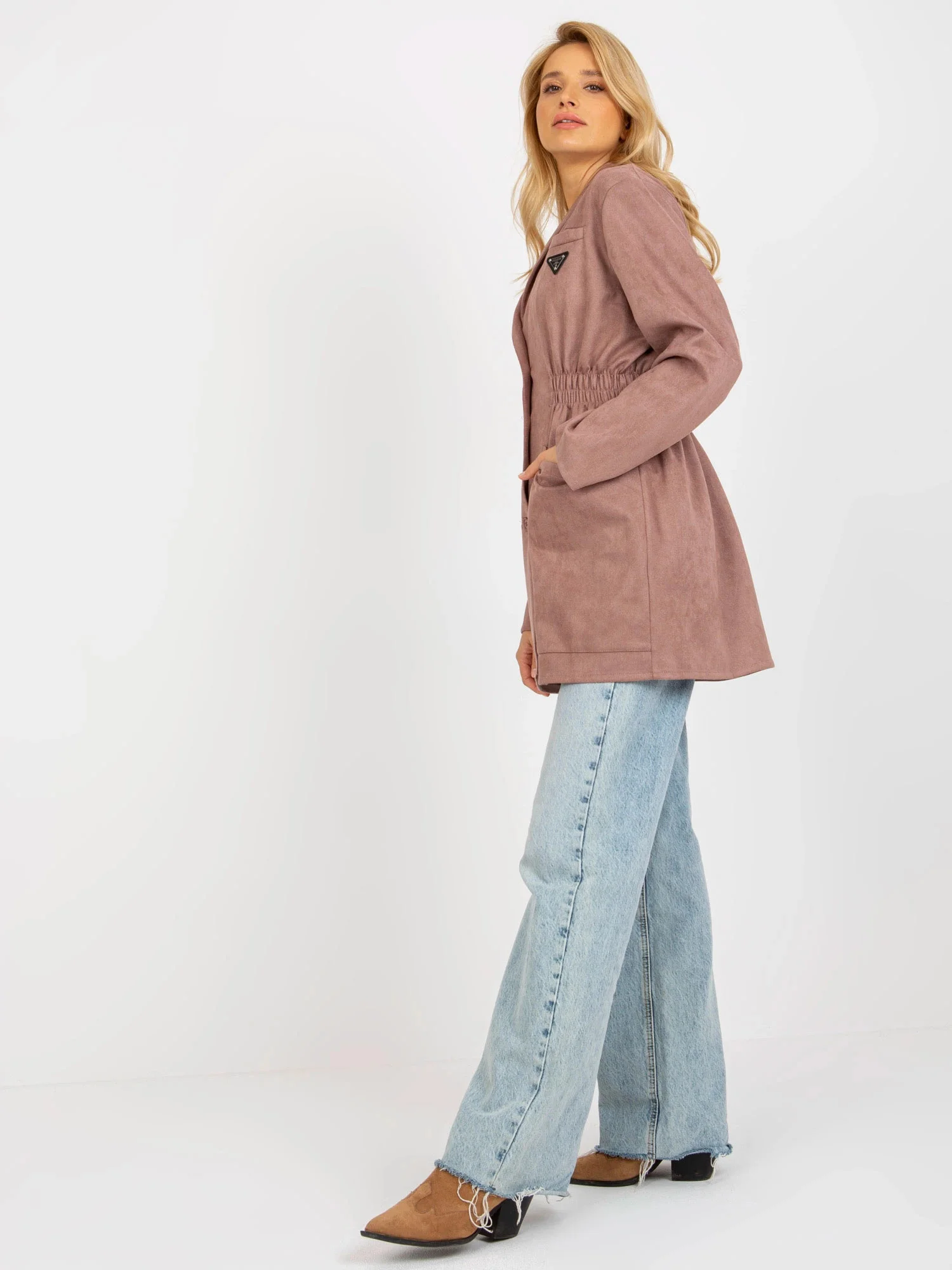 Tenký dámský kabát sako ve špinavě růžové barvě model 20840807 - Factory Price