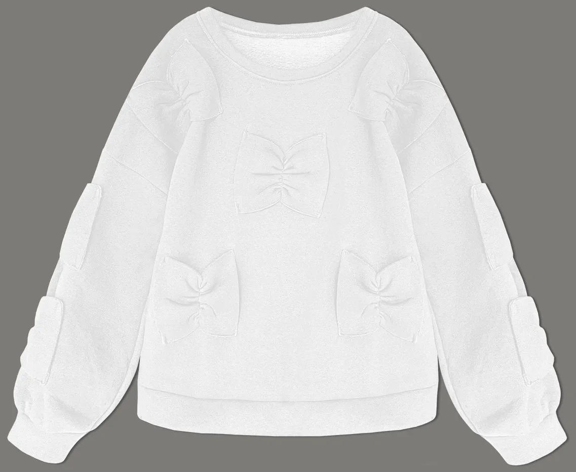 Teplá bílá dámská mikina s mašlemi (23999)