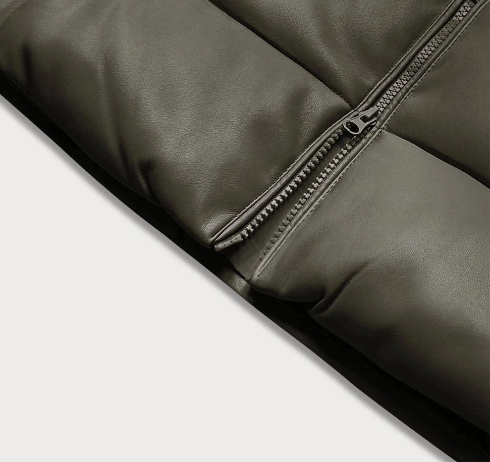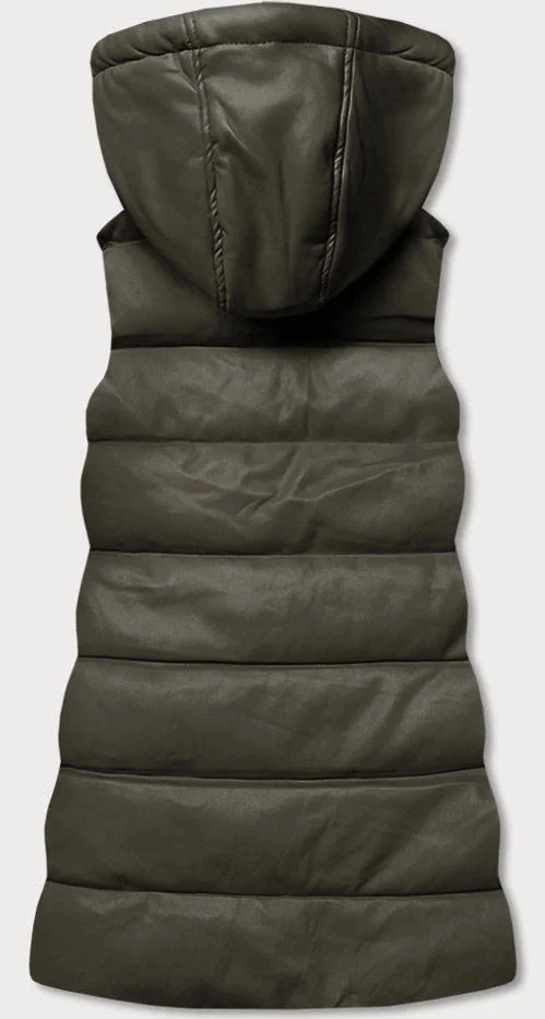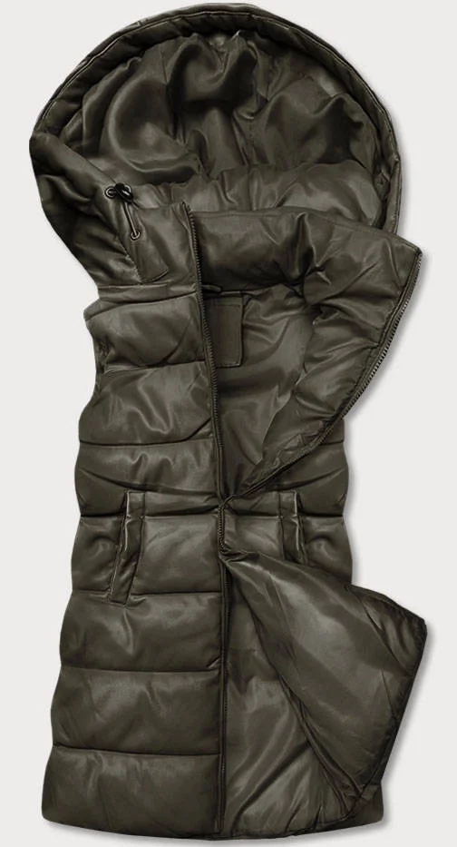 Teplá dámská vesta v army barvě z eko kůže (D-3231-22)