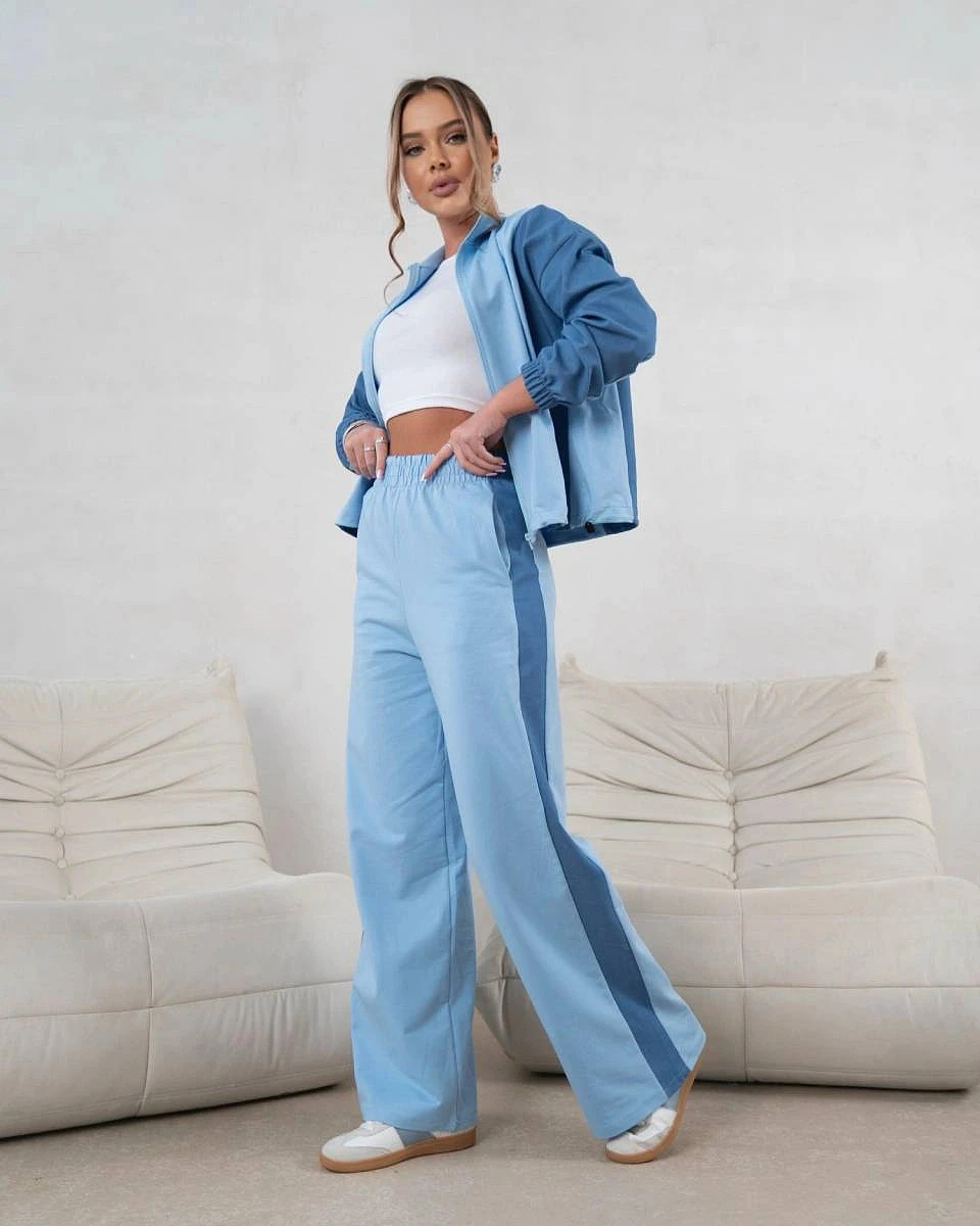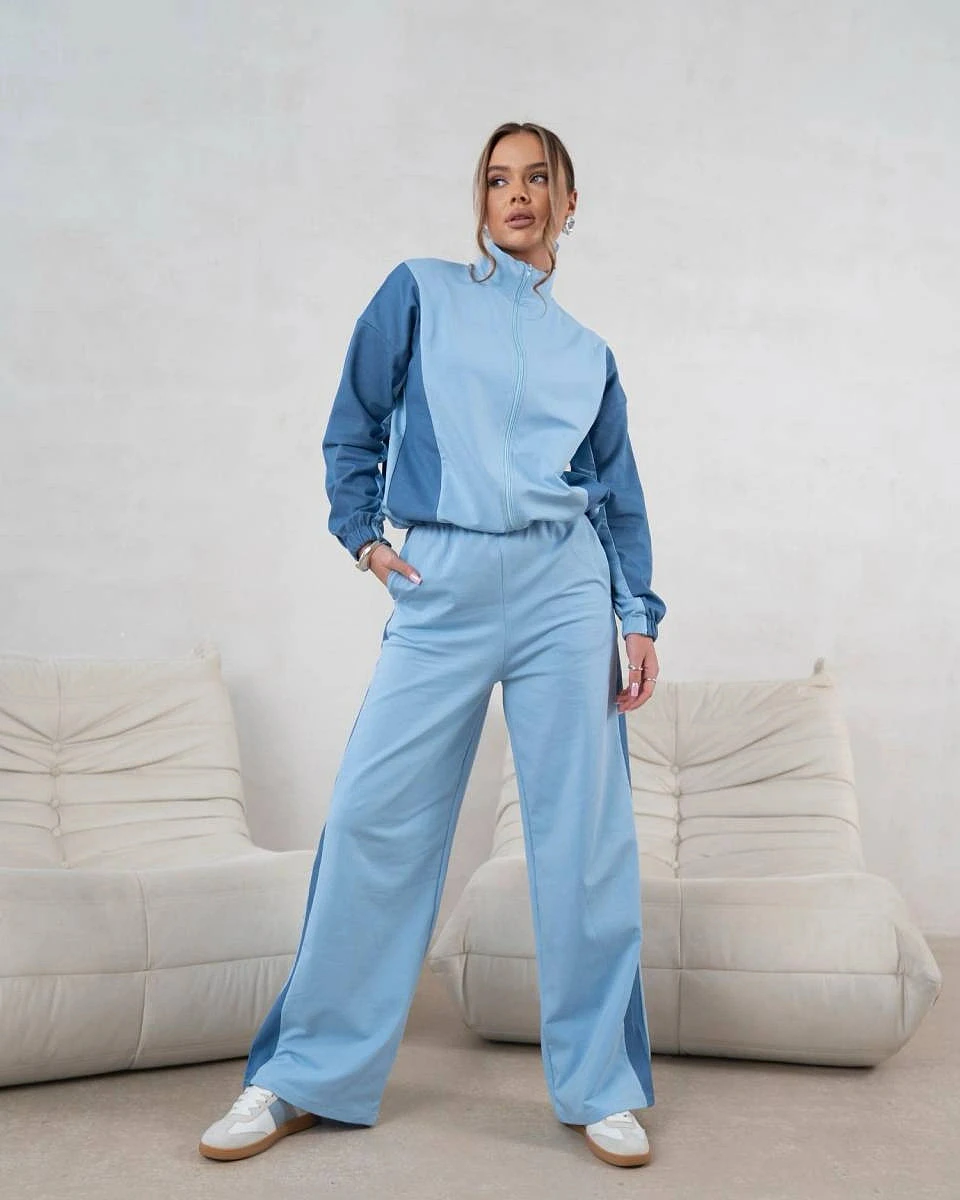 Tepláková souprava mikina na zip + široké kalhoty modrá (821151)
