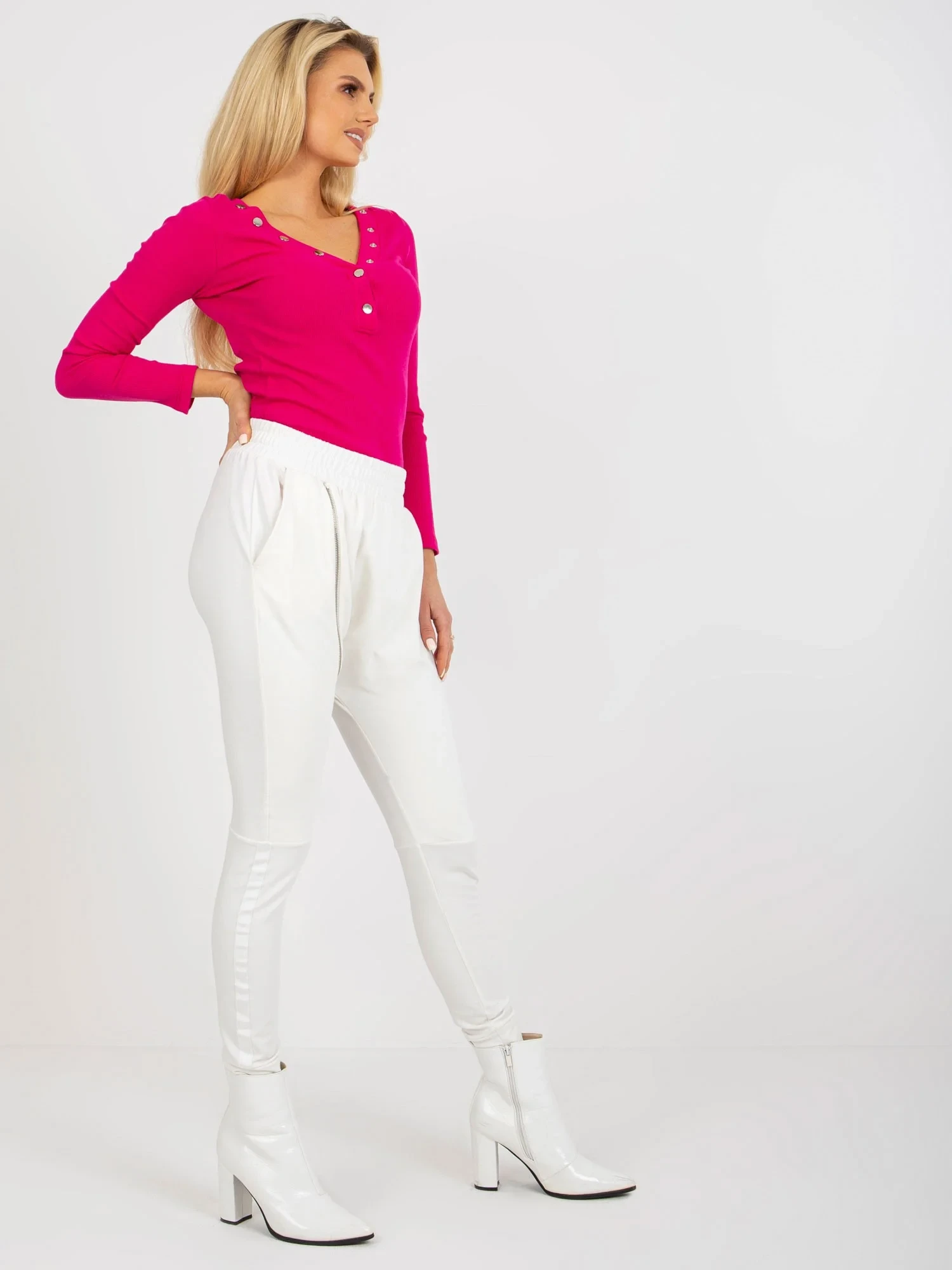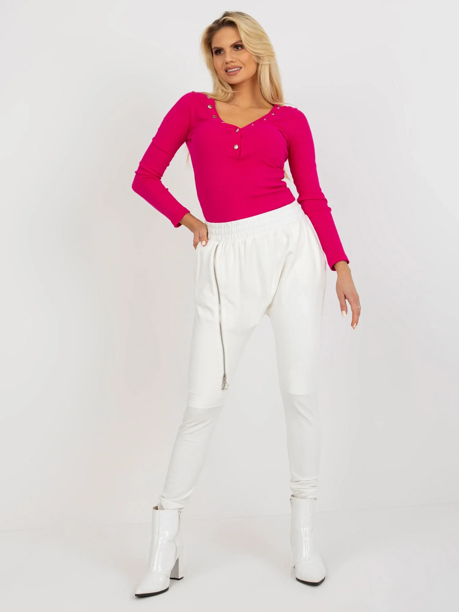 Modelka má na sobě velikost S. Rozměry modelky: výška 175 cm, prsa 85 cm, pas 63 cm, boky 95 cm.