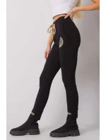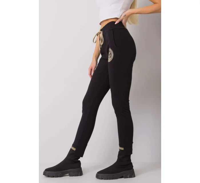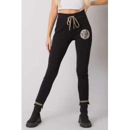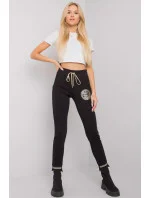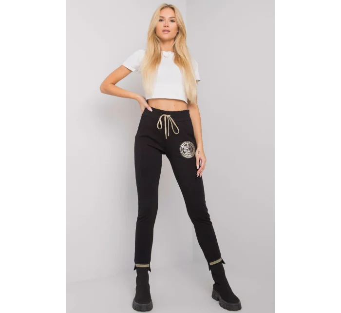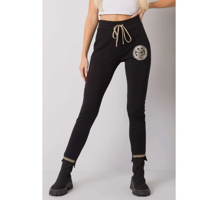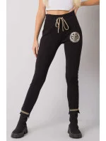 Dámské černé tepláky s potiskem. Pas s gumičkou a stahovací šňůrkou.