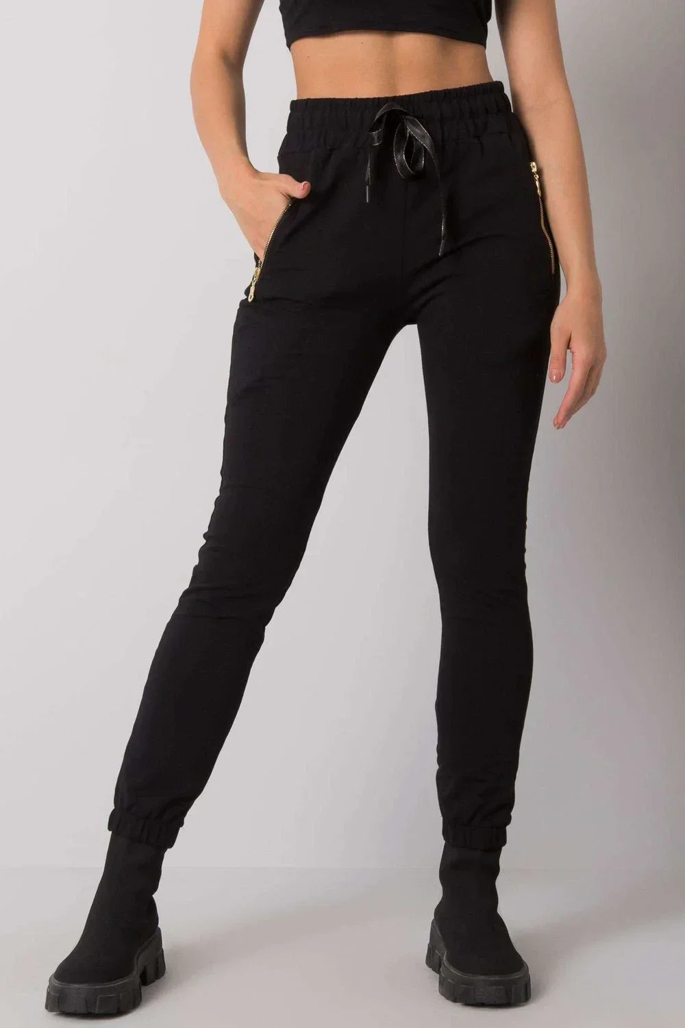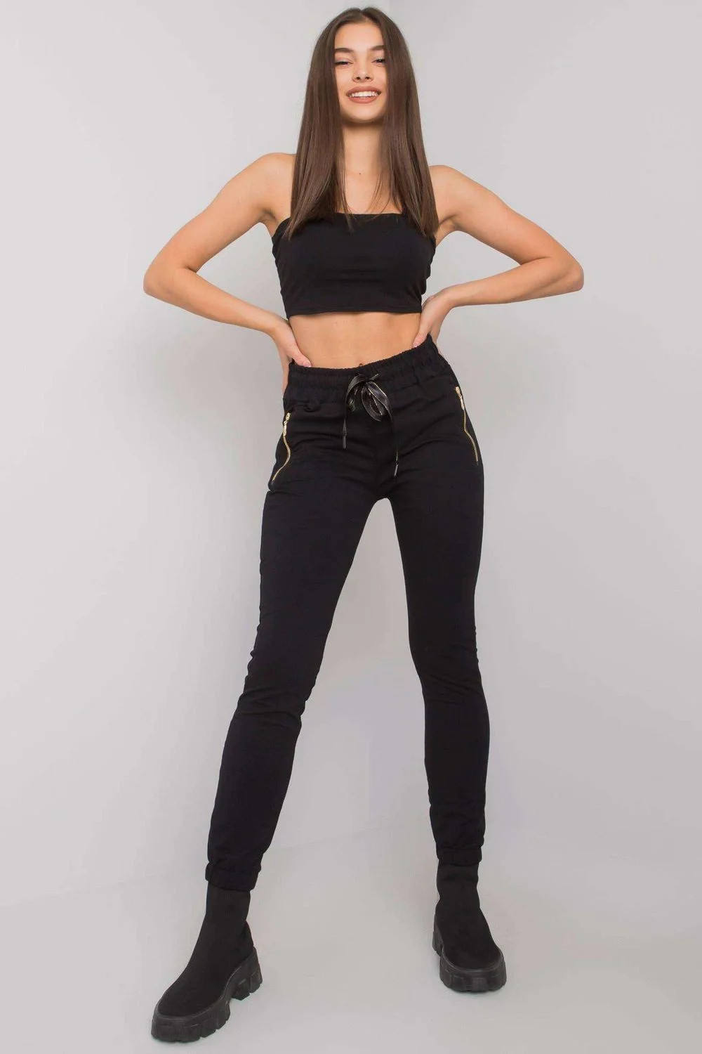Černé dámské tepláky s kapsami.