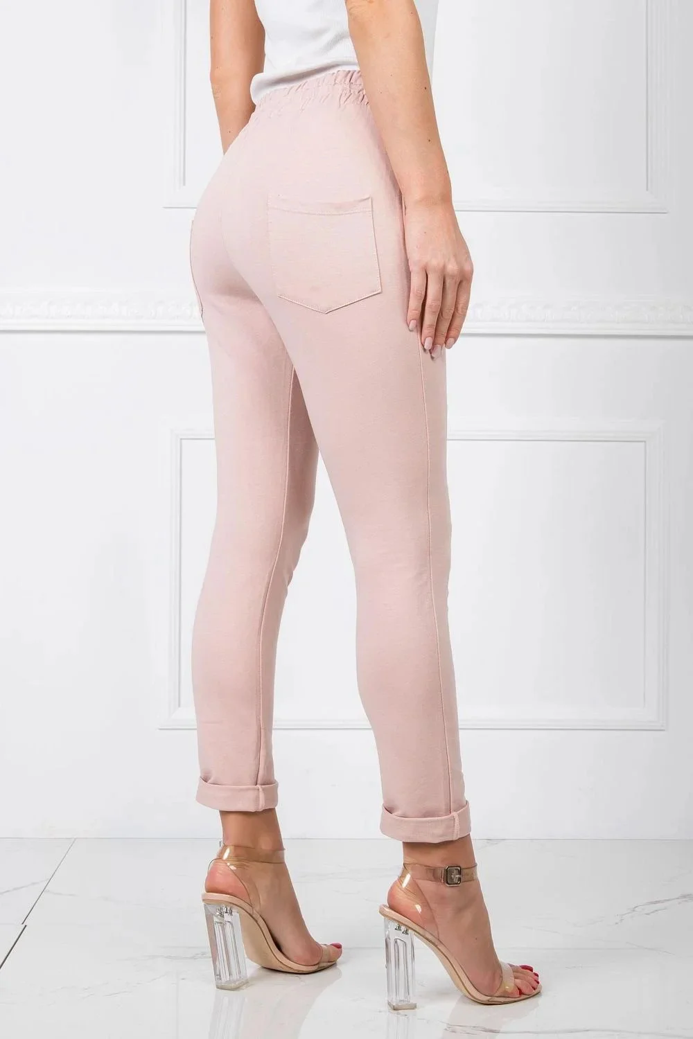 Módní tepláky jsou dnes základem šatníku každé ženy, která má ráda nejnovější trendy v oblékání. Ať už preferujete jakýkoli styl oblékání, jistě si čas od času rádi obléknete pohodlné tepláky. Tento jednoduchý model z naší nejnovější kolekce basic je velmi univerzální a nadčasový, protože ho můžete snadno kombinovat s dalšími kousky oblečení. Má velmi módní střih se štíhlými nohavicemi a vysokým pasem, který zvýrazňuje ženskou postavu a podtrhuje její proporce. Tepláky mají navíc elastický pas a šňůrku, takže si je můžete pohodlně přizpůsobit tvaru své postavy. Model je vyroben z vysoce kvalitního materiálu s vysokým podílem bavlny, který je příjemný na dotek a prodyšný.