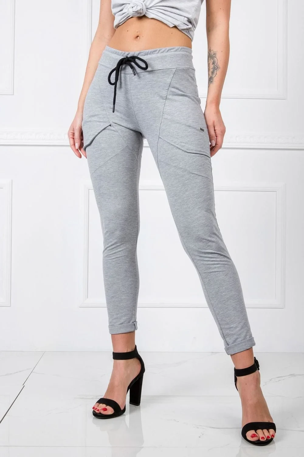 Módní tepláky jsou dnes základem šatníku každé ženy, která má ráda nejnovější trendy v oblékání. Ať už preferujete jakýkoli styl oblékání, jistě si čas od času rádi obléknete pohodlné tepláky. Tento jednoduchý model z naší nejnovější kolekce basic je velmi univerzální a nadčasový, protože ho můžete snadno kombinovat s dalšími kousky oblečení. Má velmi módní střih se štíhlými nohavicemi a vysokým pasem, který zvýrazňuje ženskou postavu a podtrhuje její proporce. Tepláky mají navíc elastický pas a šňůrku, takže si je můžete pohodlně přizpůsobit tvaru své postavy. Model je vyroben z vysoce kvalitního materiálu s vysokým podílem bavlny, který je příjemný na dotek a prodyšný.