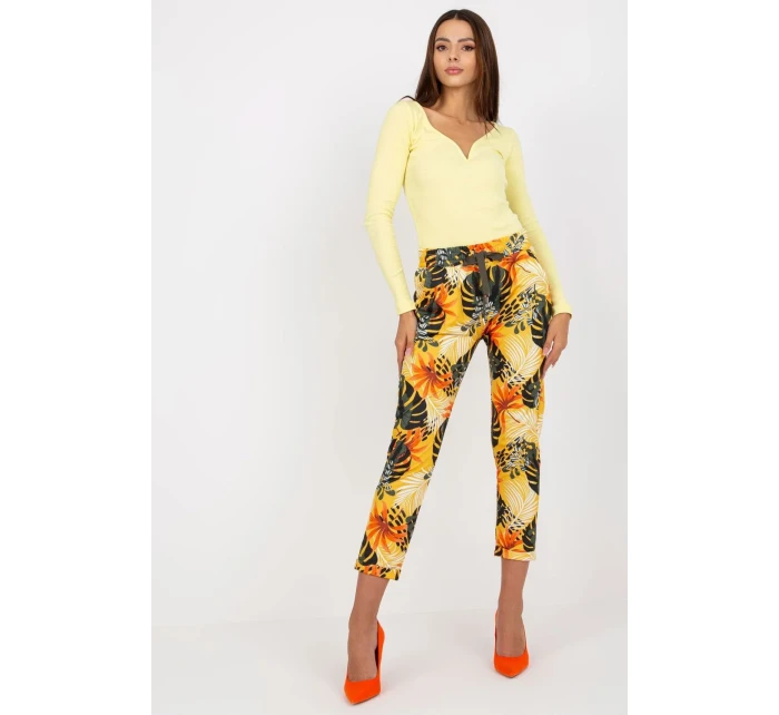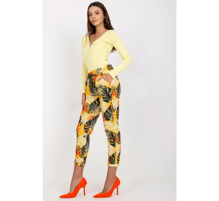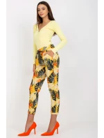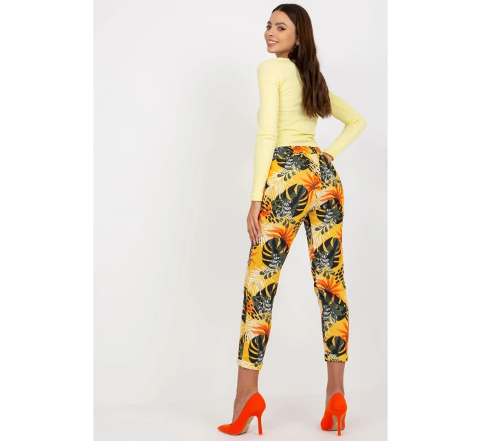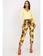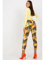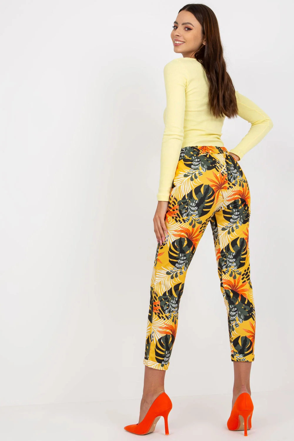 Dámské tepláky s elastickým pasem a zavazováním na šňůrku. Kapsy na bocích. Kalhoty ze vzorovaného materiálu.