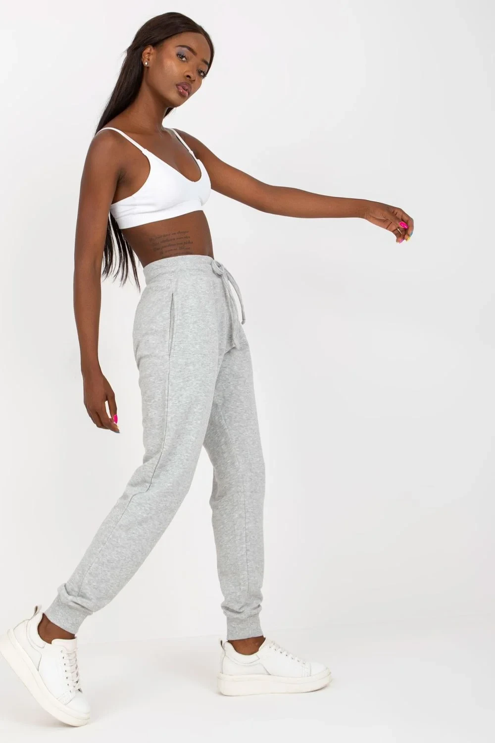 Tepláky s elastickým pasem, kapsy na bocích. Kalhoty s vysokým pasem a šňůrkou v pase.