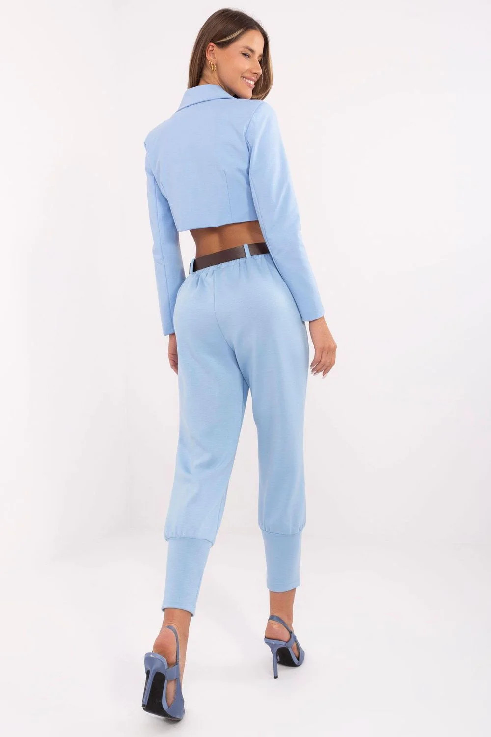 Elegantní dámské teplákové kalhoty kombinující ležérní styl s nádechem elegance. Vyrobené z vysoce kvalitní směsi polyesteru, viskózy a elastanu, poskytují pohodlí a skvělé padnutí. Vysoký pas s gumou vpředu zaručuje pohodlí nošení, a zapínací opasek zdůrazňuje pas a dodává eleganci. Hladký materiál dělá tyto kalhoty skvělými pro každodenní nošení, do práce nebo na speciální příležitosti. Model má boční kapsy a nohavice jsou zakončeny manžetami, co jim dodává moderní charakter. Ideální pro ženy, které ocení styl a pohodlí.