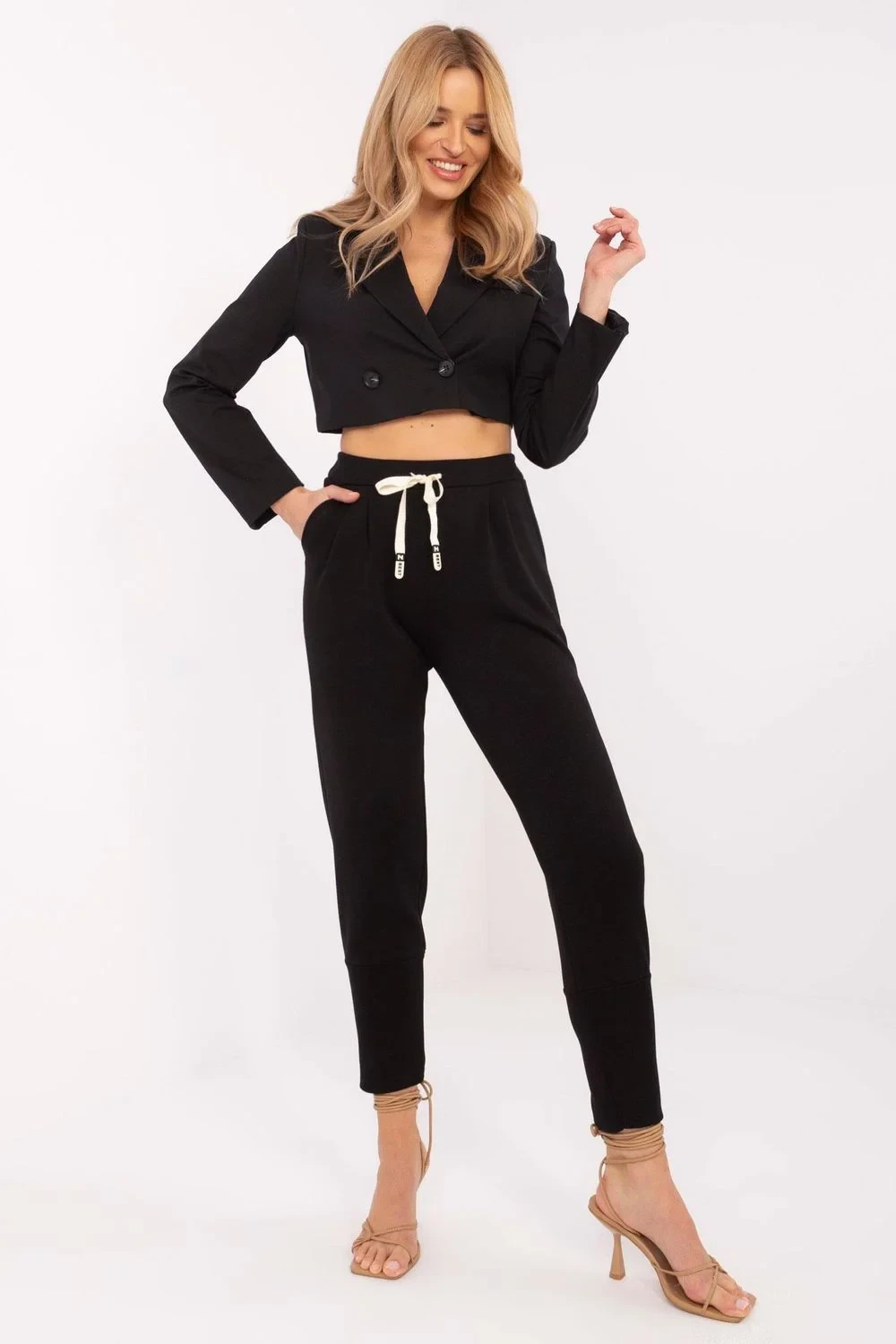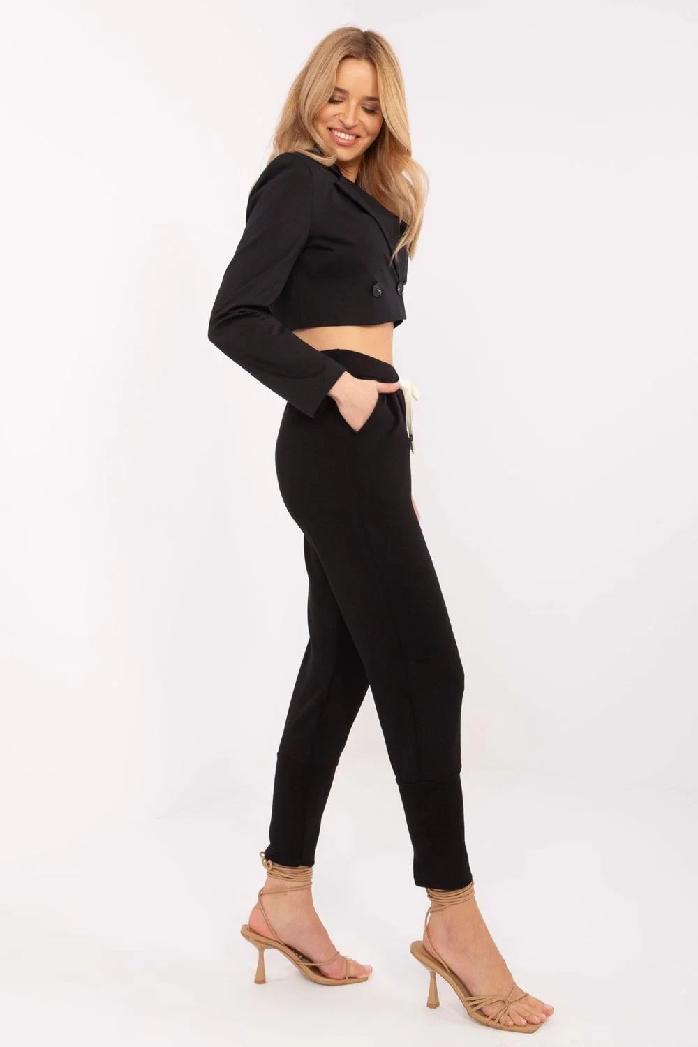 Tyto módní teplákové kalhoty jsou nabídkou pro ženy, které oceňují pohodlí a univerzální styl. Vyrobené z měkké a příjemné směsi viskózy a elastanu jsou kalhoty pohodlné a skvěle padnou. Vysoký pas zdůrazňuje pas a opticky prodlužuje nohy, a široké manžety na spodní části nohavic přidávají kalhotám sportovní charakter a brání jejich zavinování. To je ideální řešení pro ženy, které oceňují pohodlí a funkčnost. Šňarování v pasu umožňuje ideální přizpůsobení kalhot postavě, a vložené boční kapsy jsou praktické a umožňují uchování drobných předmětů, jako je telefon nebo klíče. Univerzální střih a hladký vzor způsobují, že kalhoty ladí s mnoha stylingy, jak každodenními, tak sportovními. Můžete je nosit každý den, na procházku, na trénink nebo na setkání s přáteli. Tyto dámské teplákové kalhoty jsou ideální volbou pro ženy, které oceňují pohodlí, styl a funkčnost. Osvědčí se jak při každodenních aktivitách, tak při odpočinku doma.